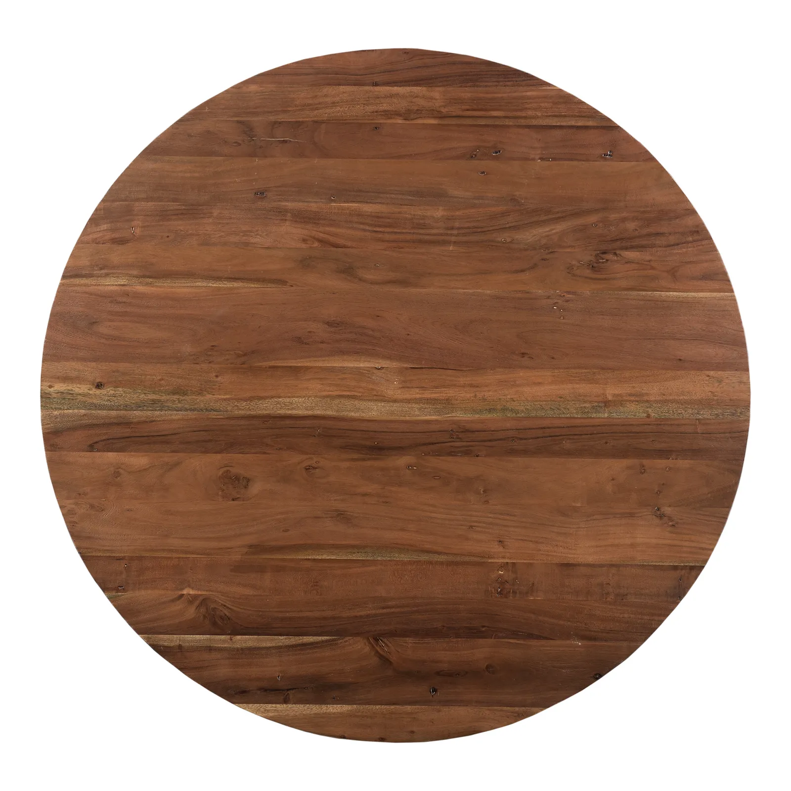 The Bent collection puts nature’s craft front and center. Made of beautiful solid acacia, rustic detailing shows off the unique knots and whorls of the wood. This round dining table’s expansive surface beautifully showcases the wood’s personality, and is offset by a curving industrial metal base. Pair with other pieces in the Bent collection for a complete look.