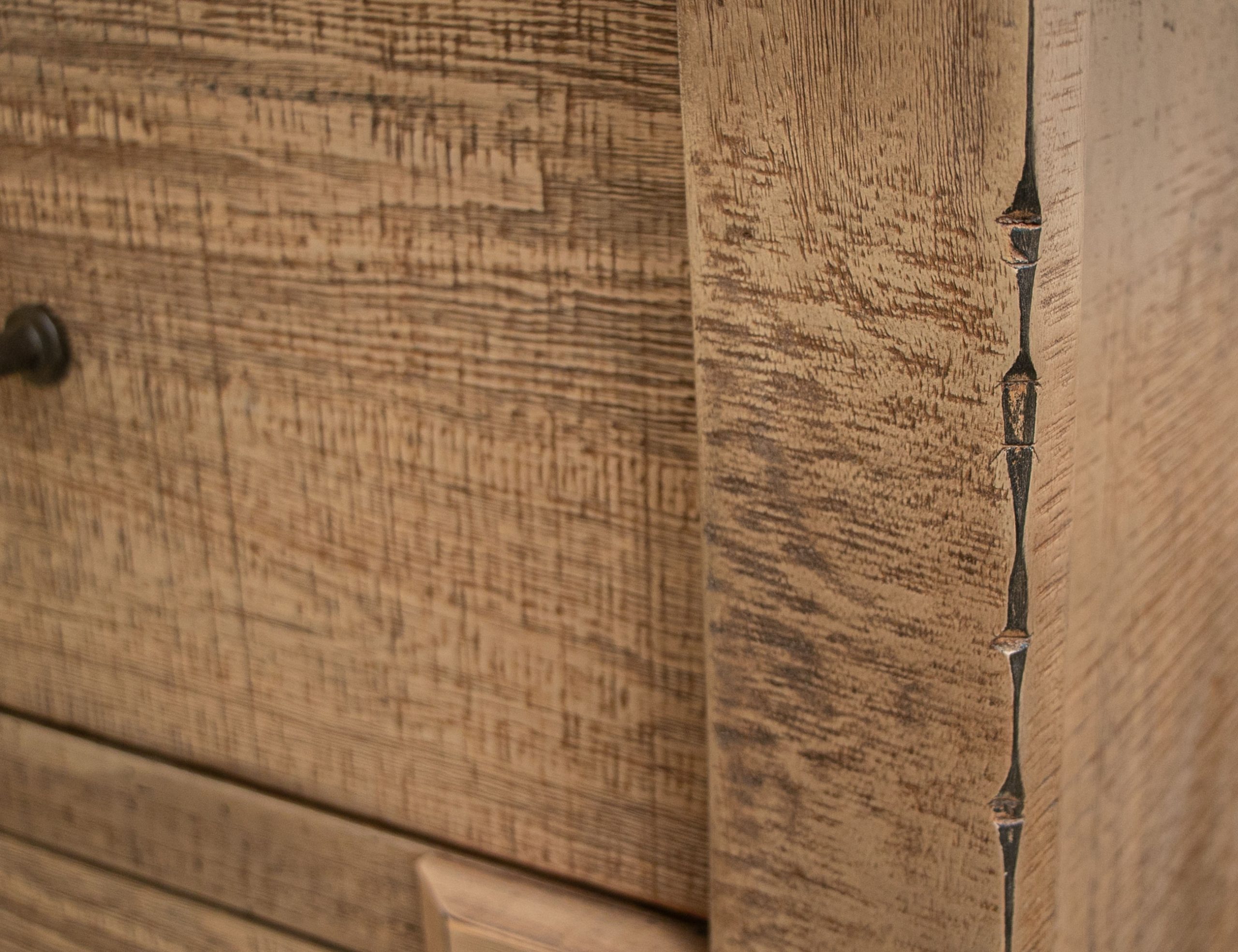 • Finish is achieved through a multi-step lacquer process in a vintage white tone.