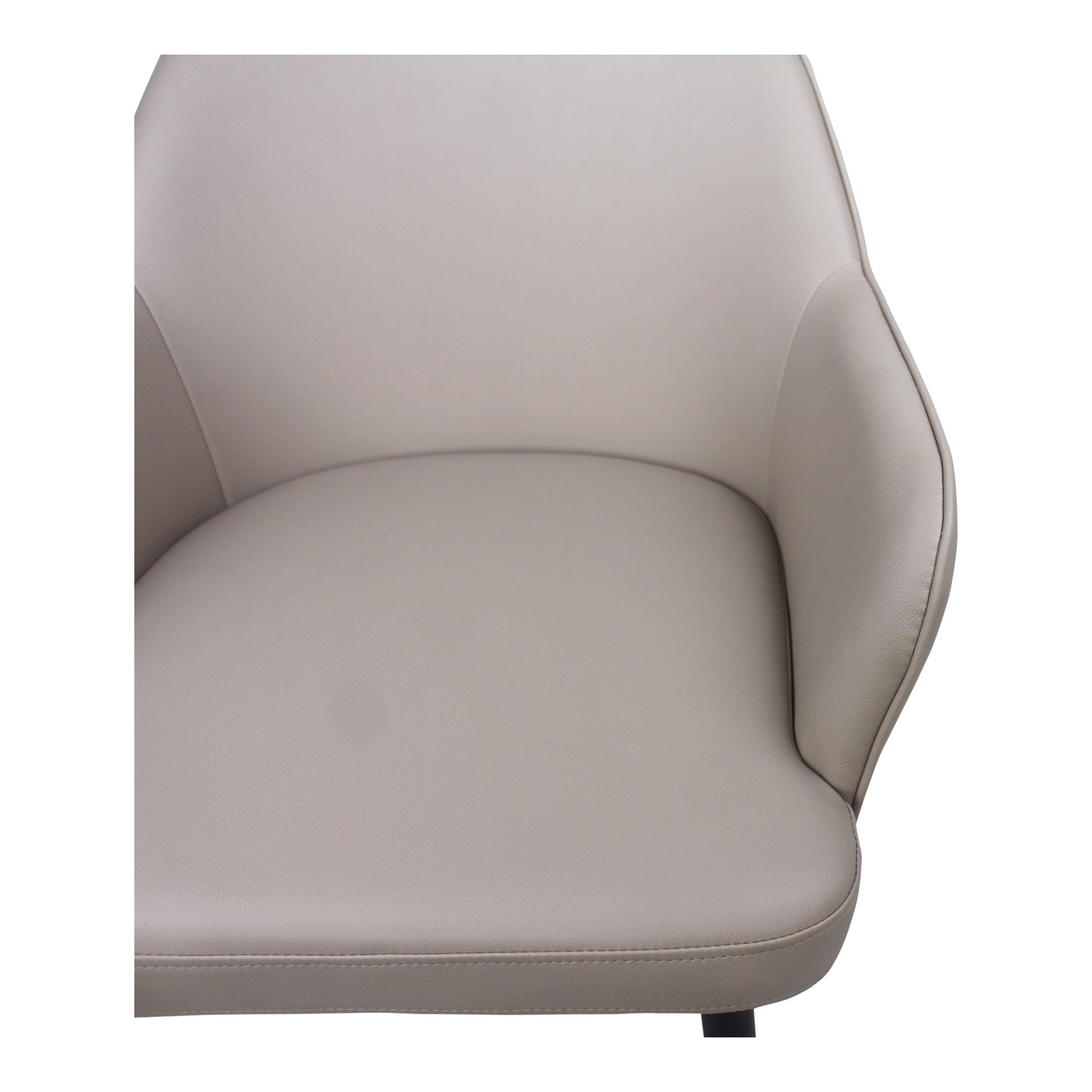 The Berlin Accent Chair is all about sophisticated elegance. With faux leather upholstery and brass detailing, this chair packs a punch. Rounded sides and a sturdy back make for a comfortable addition to your home.
