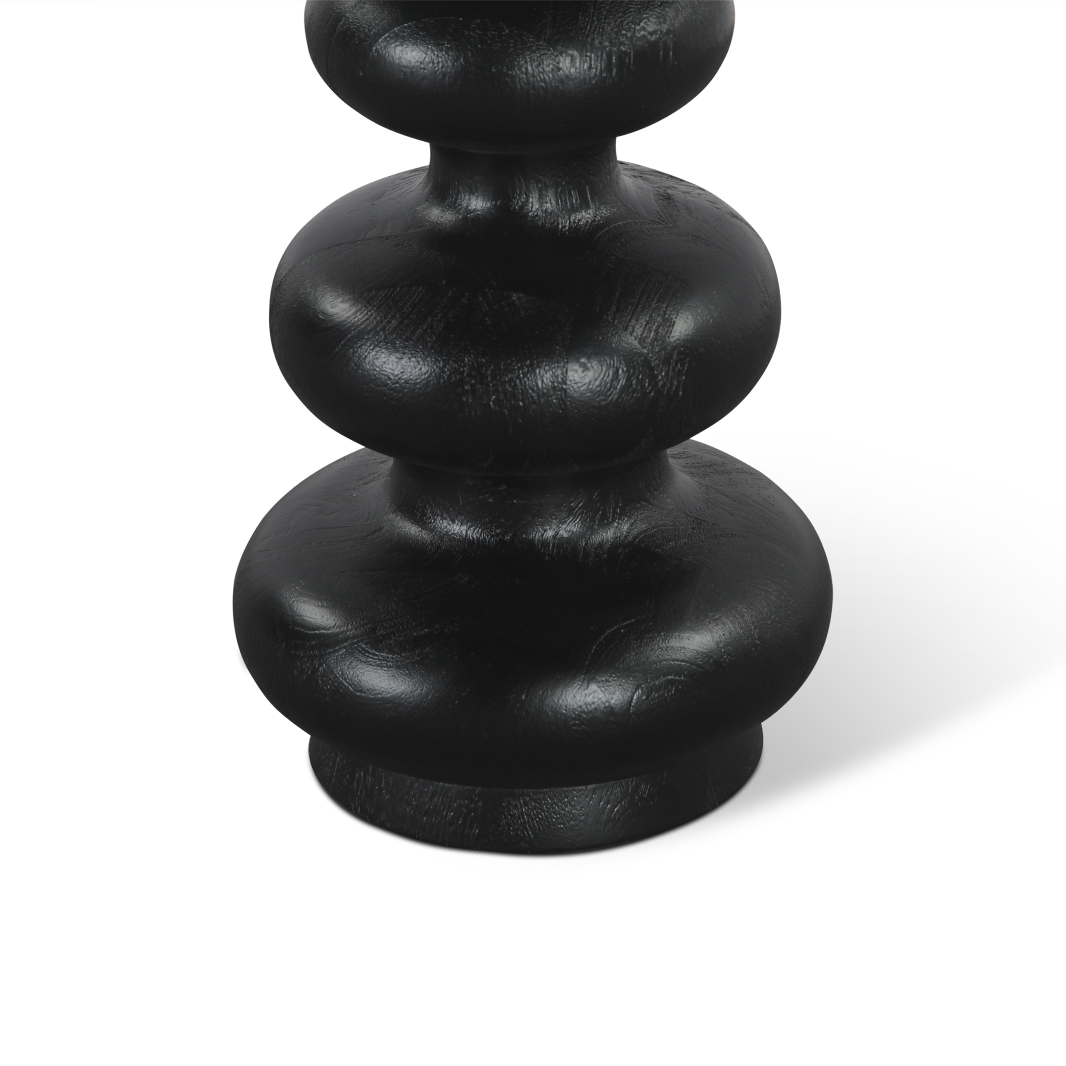 The Biloba collection of modern contemporary dining and occasional tables showcases the timeless beauty of solid Mango wood, celebrated for its durability and distinct grain patterns. Each table is meticulously hand-turned with a sleek black finish that seamlessly blends artisan craftsmanship and contemporary aesthetics. The Biloba collection is sure to enrich any dining or living space with enduring style and sophistication.