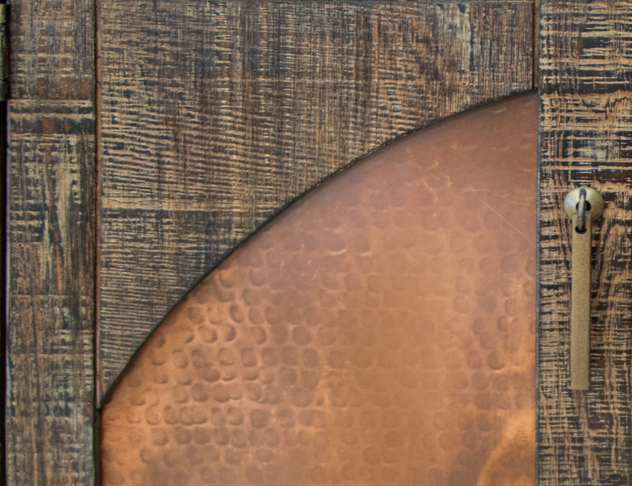 • Hand-wrought iron pulls with non-chip finish in bronze.