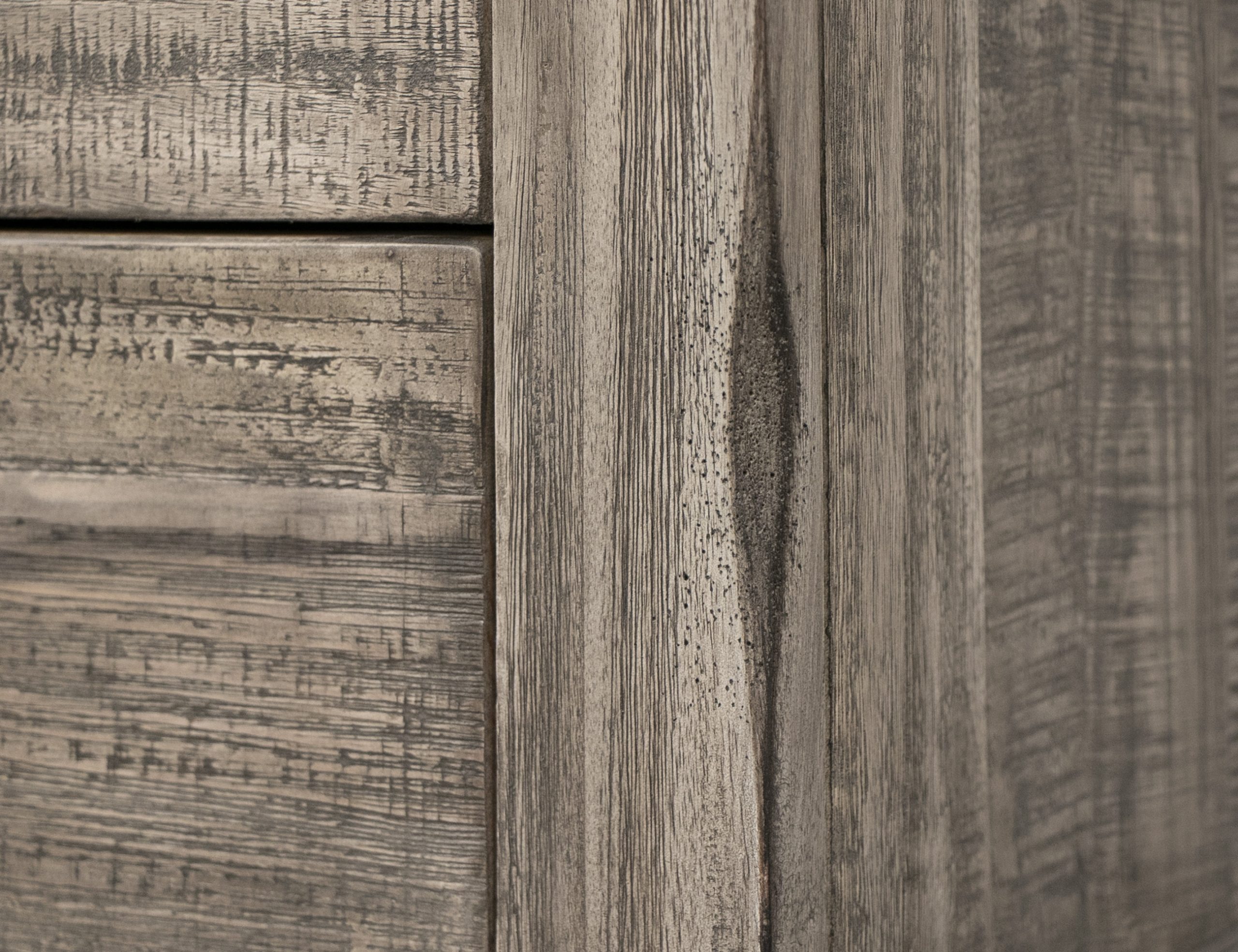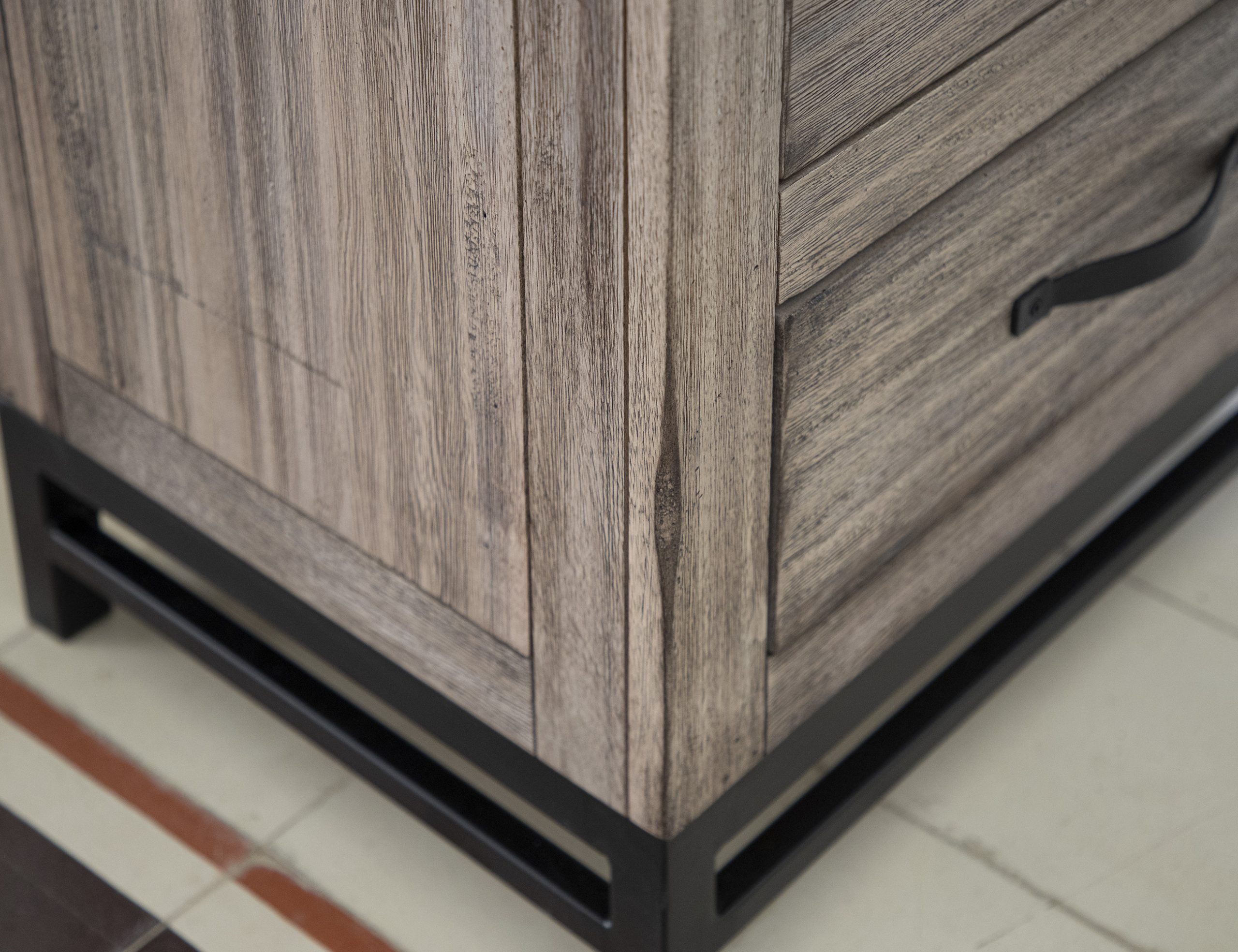 • Multi-step lacquer translucent light brown finish on a hand-aged wood. , complemented by a black finish on the iron base.