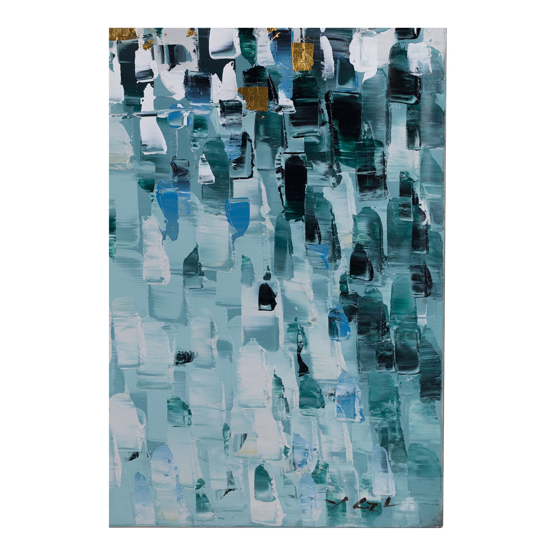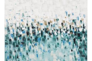 Soothing whites and blues come together in this painting, with highlights of gold. Evoking a feeling of calmness it’s the perfect addition to make your place feel, more at ease with the world. Hand-painted in acrylic-on-canvas, the painting features small embellishments of gold-foil that subtly pick up light and catches the eye.