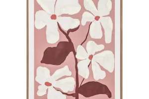 The Blush framed painting offers a contemporary twist on floral art. This unique piece features a print on canvas enhanced with added paint texture for a tactile experience. Its warm pink hues evoke a vintage feel, while the irregular floral form creates a sense of playfulness and softness with a touch of lighthearted elegance.