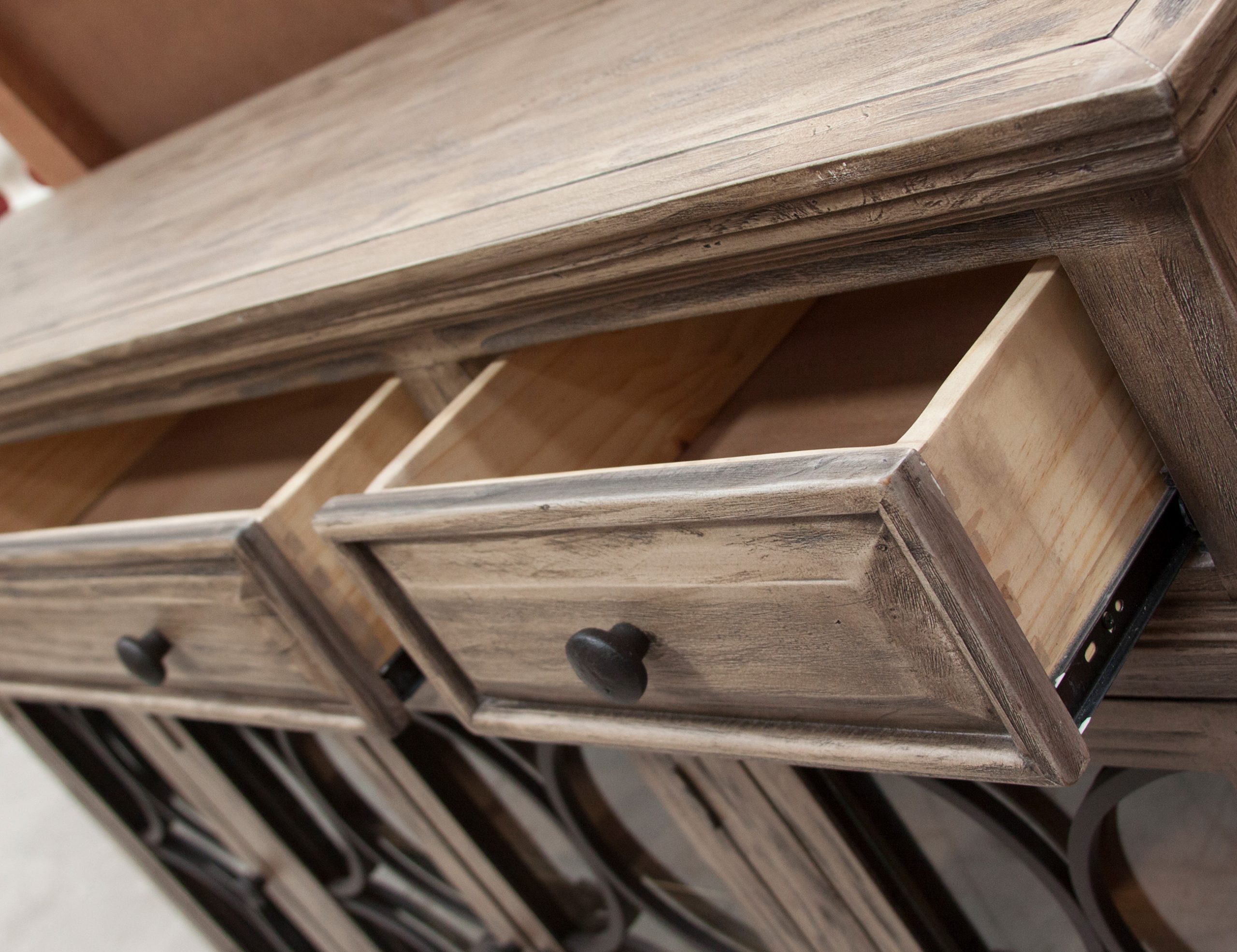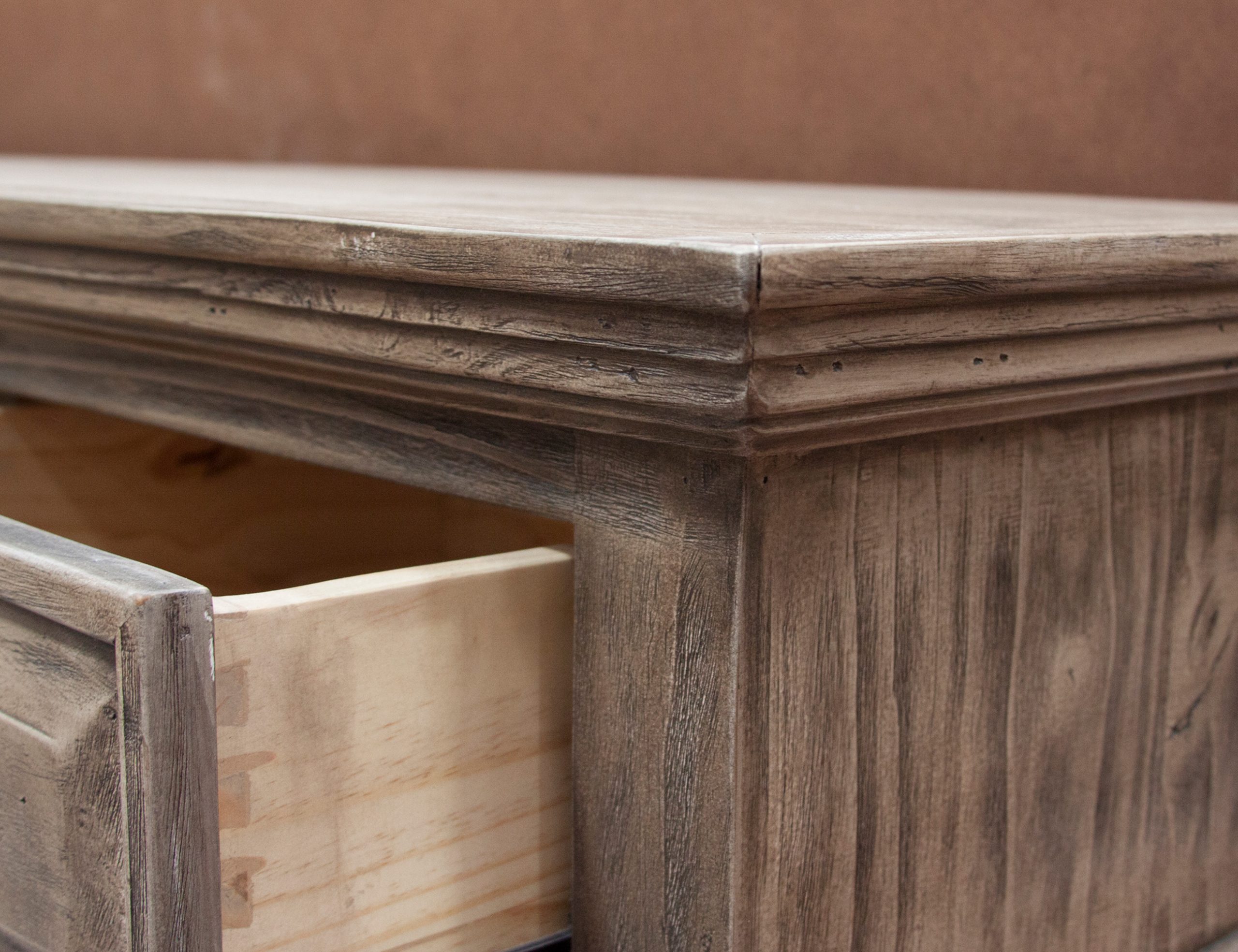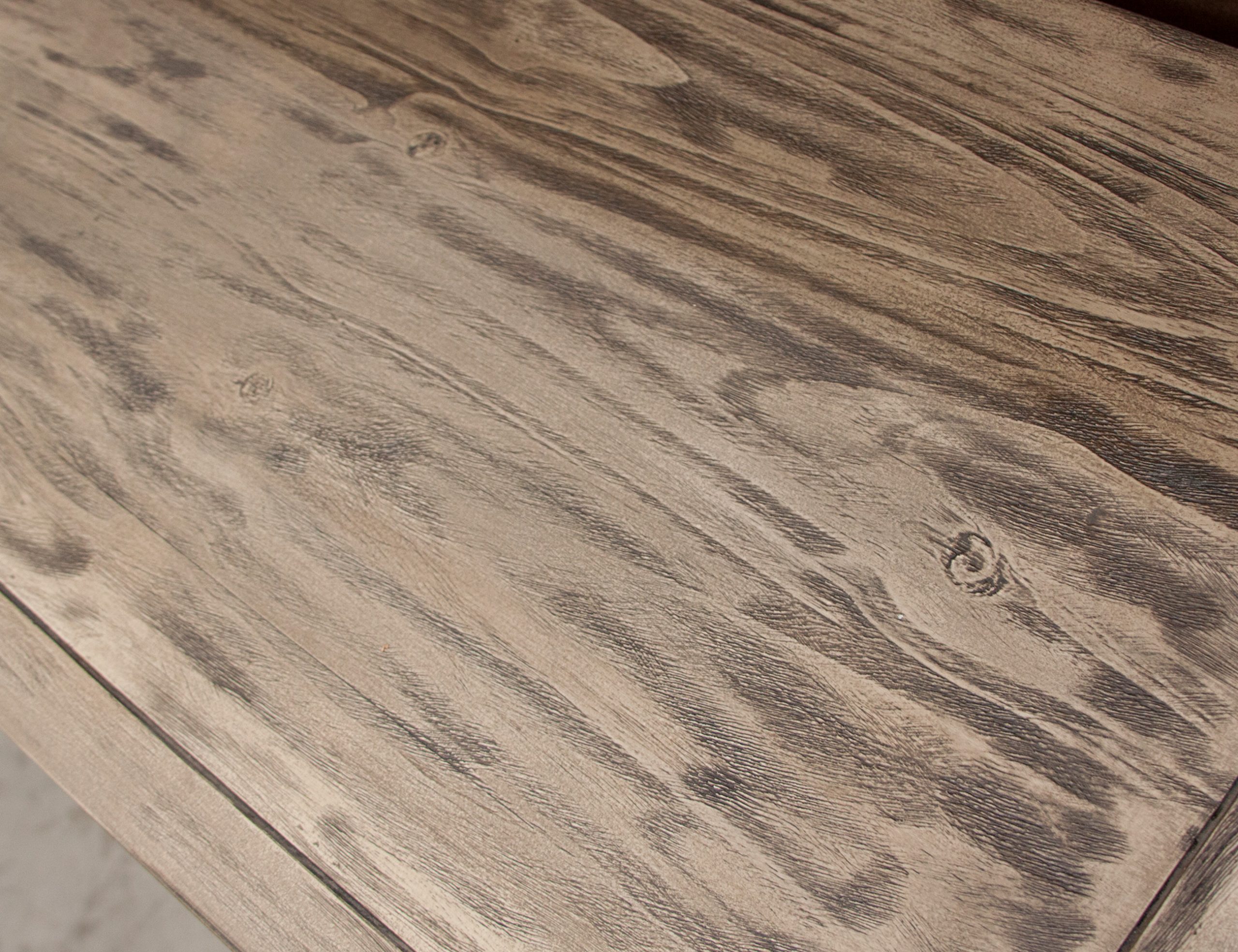 • Multi-step lacquer translucent in a black finish on a hand-aged wood.
