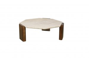 Breton 40″ Octagonal Coffee Table with Travertine in Walnut