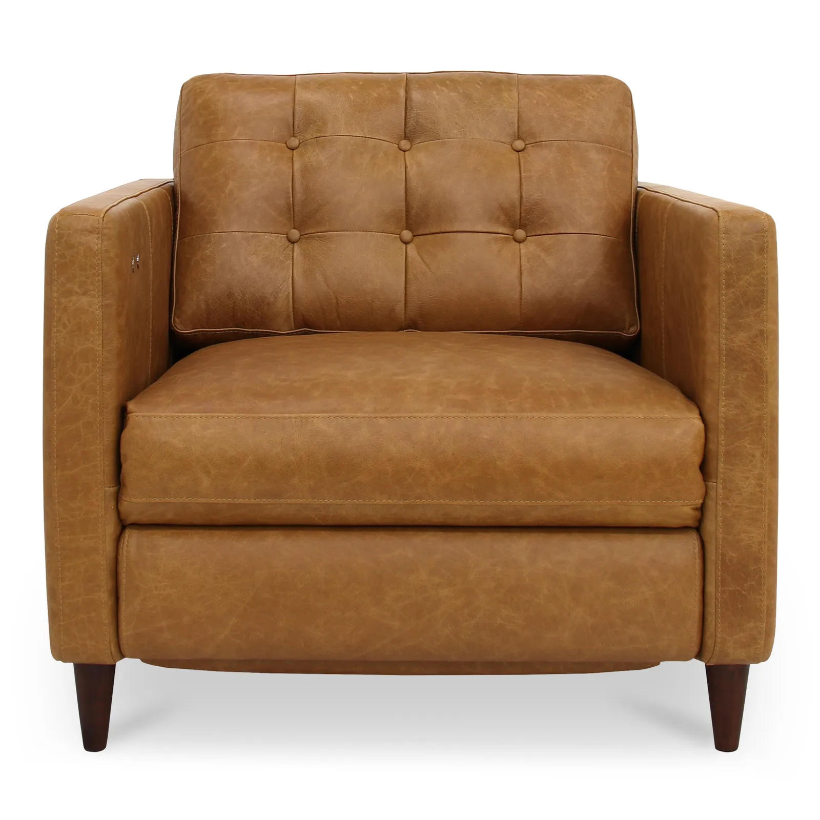The Bridgers power recliner chair’s slim frame features an Okin power motion recliner lift with a 52.5″ power cord with a 3.5m extension cable. Wrapped in beautiful top-grain leather, it presents a timeless sophistication with its contemporary comfort.