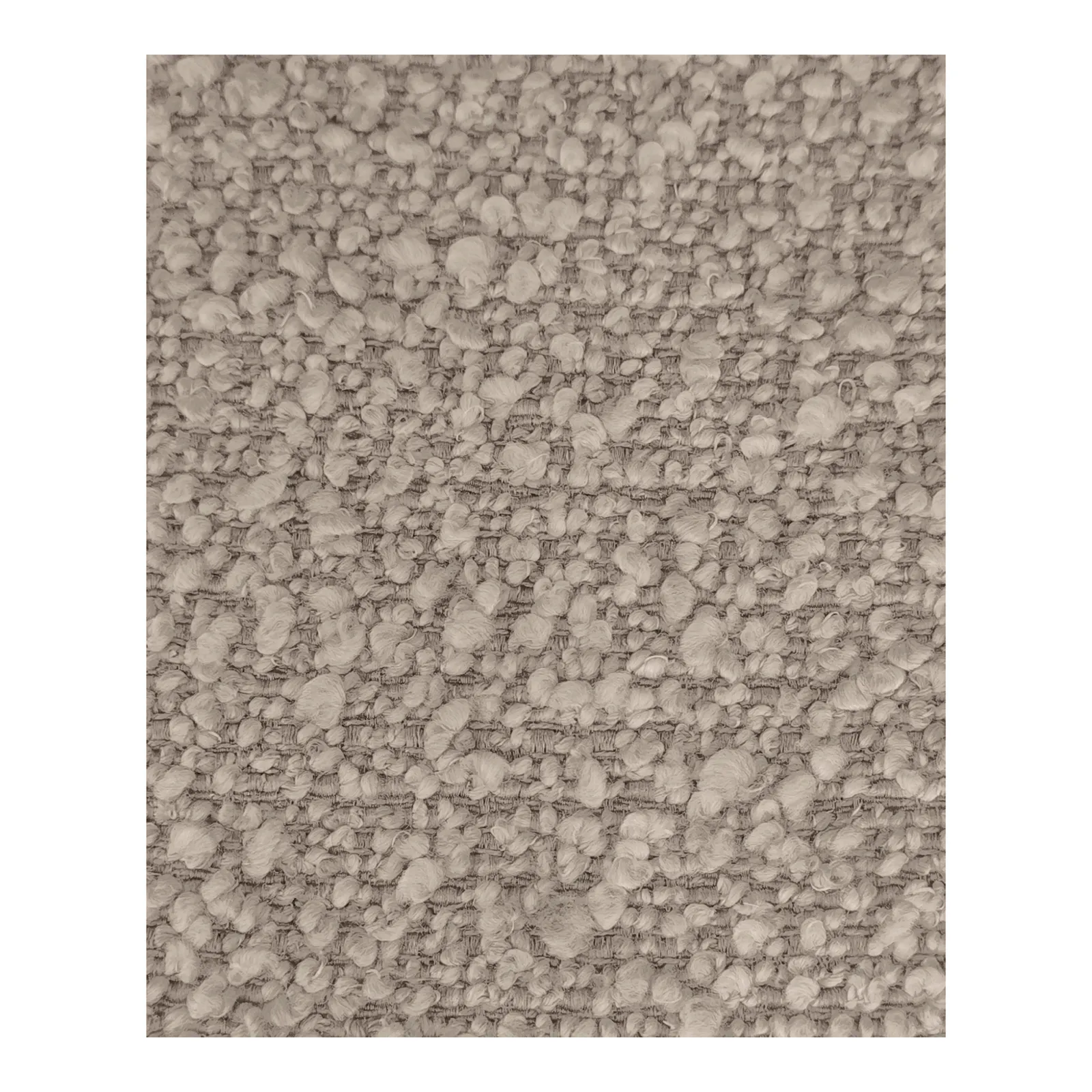 - Exaggerated pulled boucle that is 95% polyester, 5% acrylic where big loop yarn is interwoven with coarse fine yarns. Upholstery is OEKO Tex standard 100, 40,000 rub count