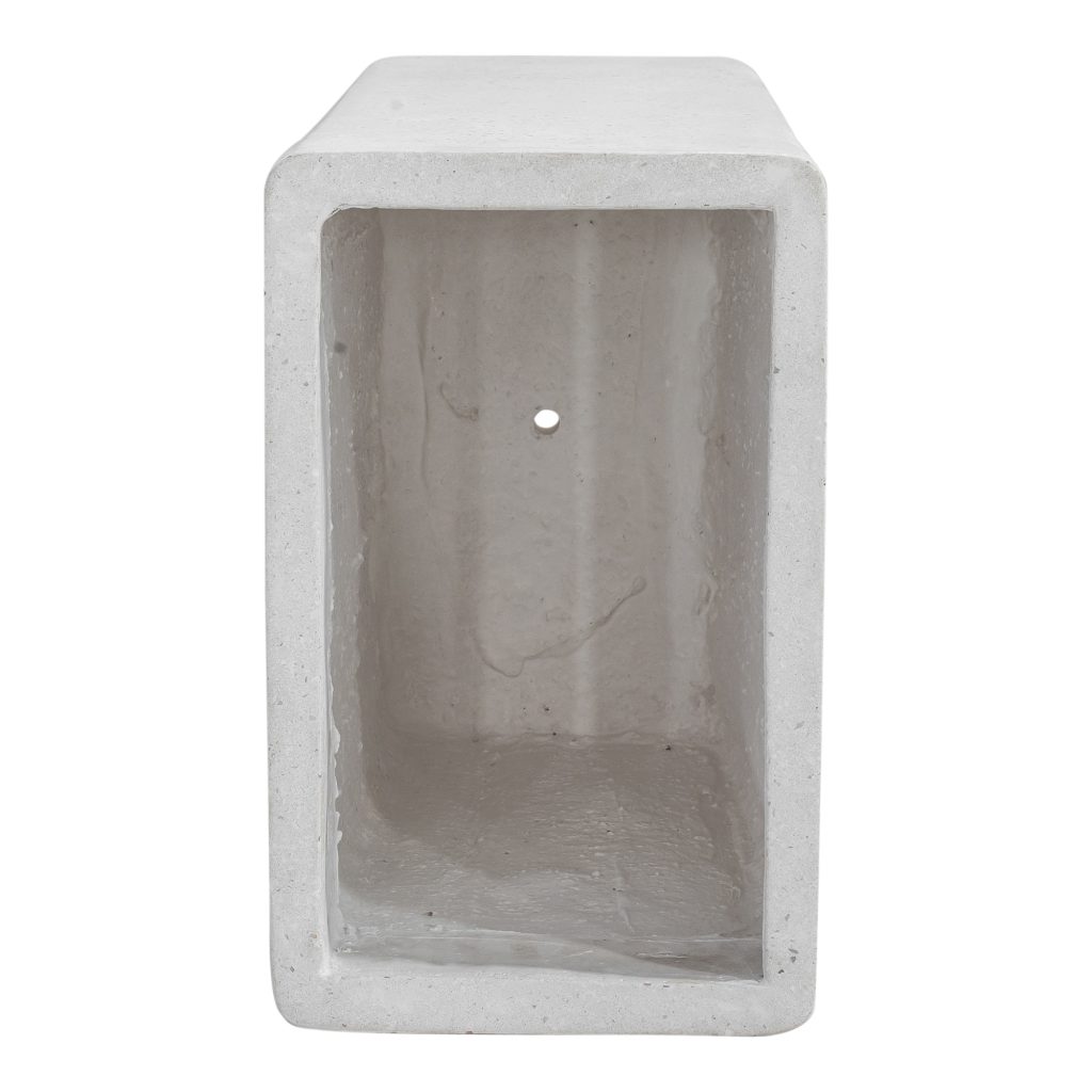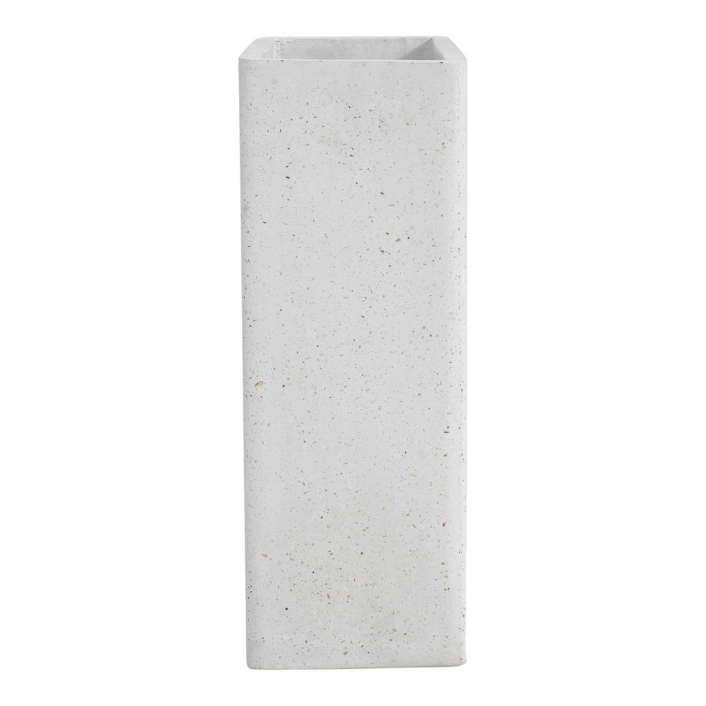 A sculptural planter to blend in seamlessly with your outdoor setting. An eye-catching base cutout and tall rectangular form are fused in an ivory mineral-effect terrazzo that adds a sense of intrigue to this outdoor statement design. Use as a standalone or in pairs for a contemporary, symmetrical display in two soothing colors in a matte finish.