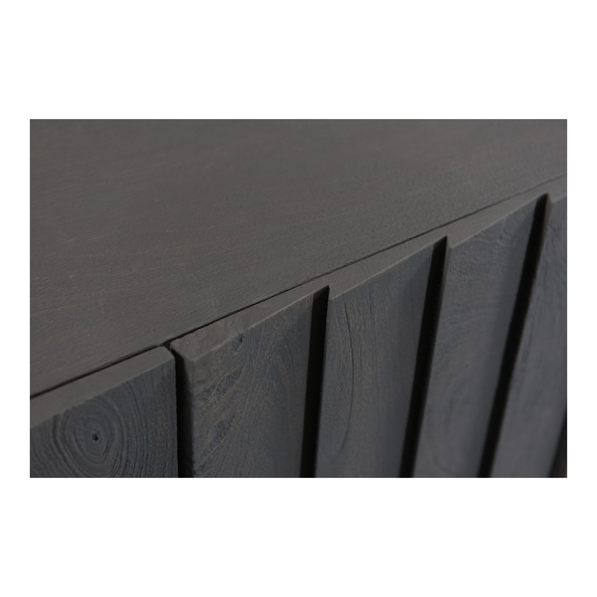 Invite darker hues and decorative introspection into your space with the Brolio collection. Solid, dark-hued mango wood cuts a dramatic profile, while sturdy iron legs bring sculptural elegance to satisfy those artsy cravings. The Brolio sideboard features 4 hidden doors, providing a subtle look for your dining space while still safely storing all your dinnertime items. An ideal storage solution for the dining room, pair this piece with others from the Brolio collection for a complete look.