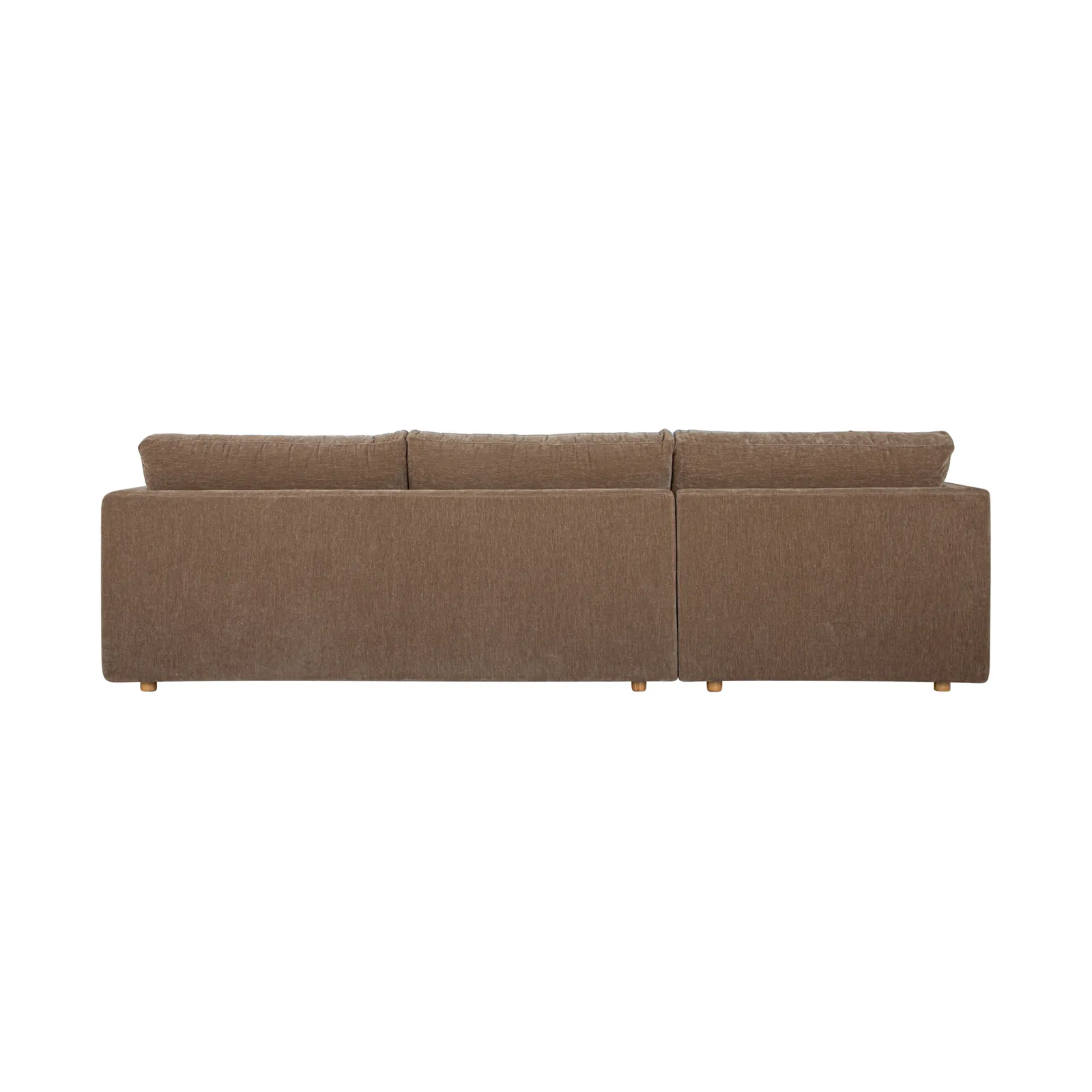 Comfort with structure—that’s Bryn’s sweet spot. Designed with generous seat depth, supportive foam-and-fiber cushions, and a full-length chaise (left or right), Bryn brings spacious lounging without the bulk. Textured camel-toned upholstery adds warmth and depth, while solid oak legs keep the silhouette grounded. Underneath, a solid beech and plywood frame gives it real staying power. It’s clean, cozy, and built to handle the long haul.