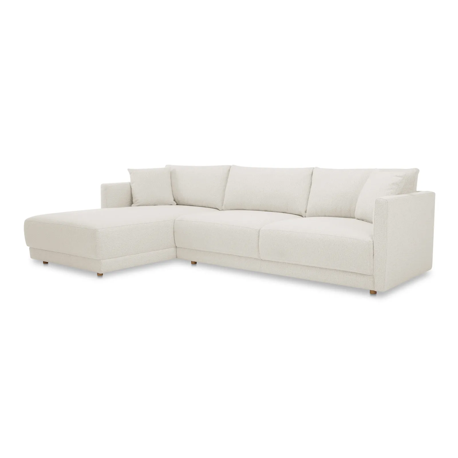 The Bryn sectional brings together style and sustainability. A larger profile is finished in a boucle, velvet and wool blend as warm tones and textured materials reflect traditional, heirloom-like qualities. This piece is upholstered with GRS© (Global Recycled Standard) certified, and also features a frame crafted from FSC®-certified wood, which ensures that the wood is sourced from responsibly managed forests, and the product is manufactured in good working conditions, with minimal environmental and chemical impacts.
