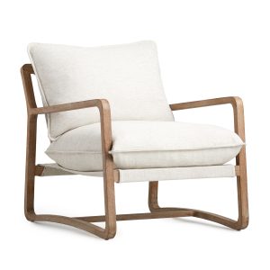 An eye-catching sling chair designed for comfort and style, with dreamy plush cushions and a wood frame that’s all curved edges.