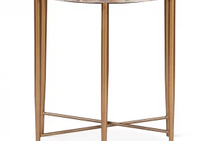 The Calico 24″ Side Table features a stunning Smoky Quartz top with rich, translucent hues, complemented by an elegant antique gold base. Its sophisticated design and luxurious materials make it a perfect statement piece, adding a touch of glamour and refinement to any room.