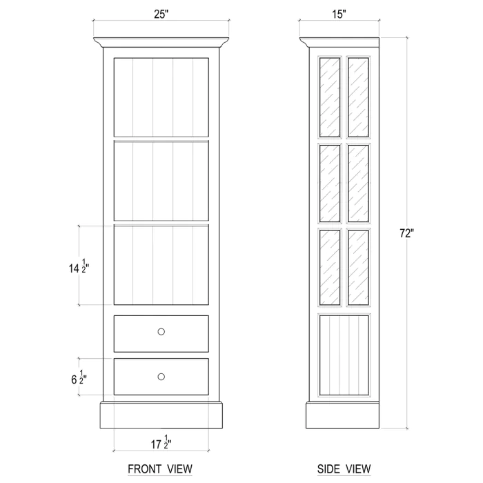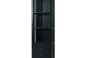 Open shelves and a pair of drawers ensure plenty of style and functionality for the Cape Cod Bookcase. Featuring solid mahogany, this bookcase offers a tall, narrow footprint and dovetail drawer construction. This piece is offered with a vast array of finish and distress options to create a truly custom design.Batavia Black