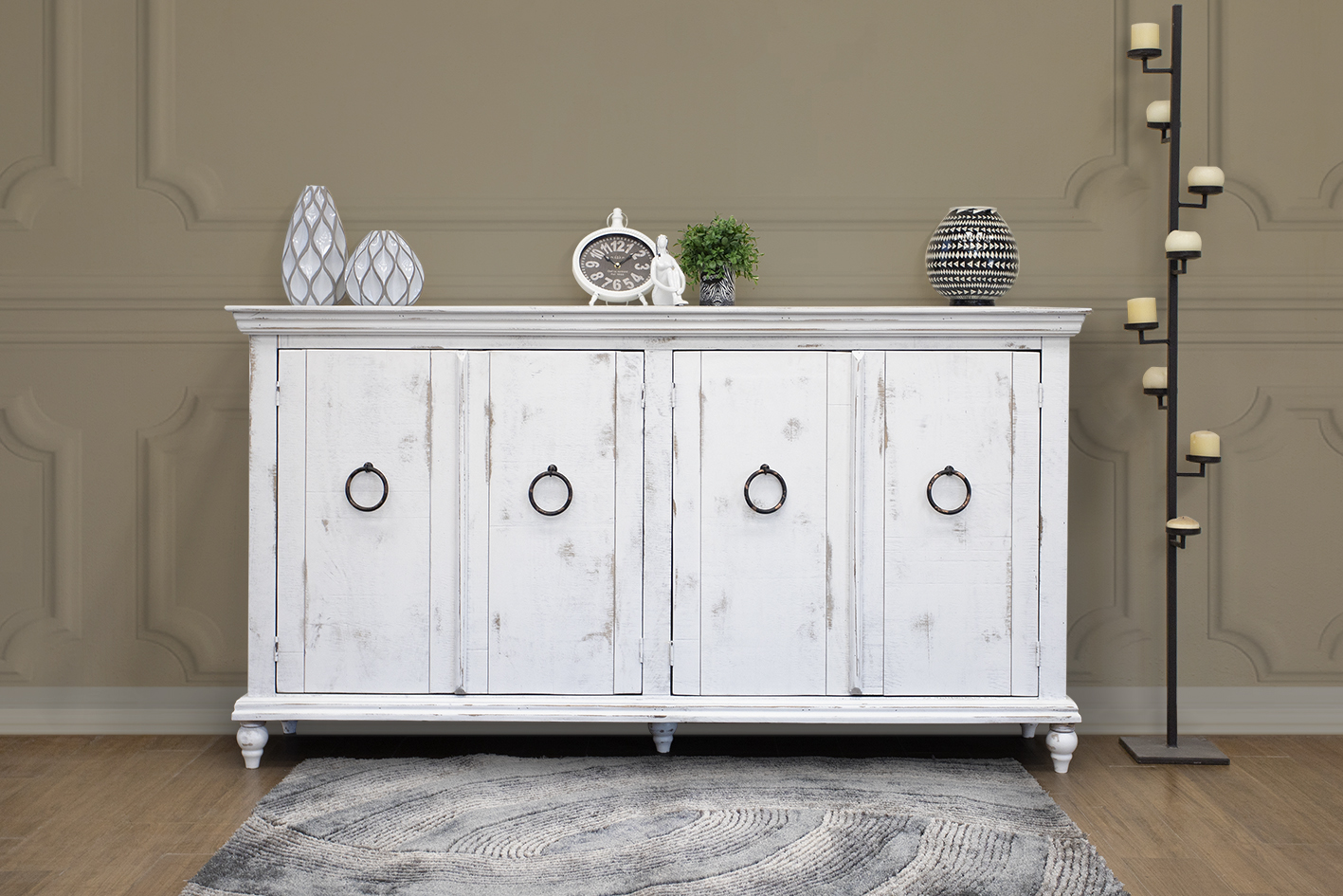 • The Capri console effortlessly introduces a rustic charm to your space. Inspired by the old world, its design features clean lines and hand-turned feet, culminating in a meticulous finish of hand-distressed wood that imparts an antique allure.