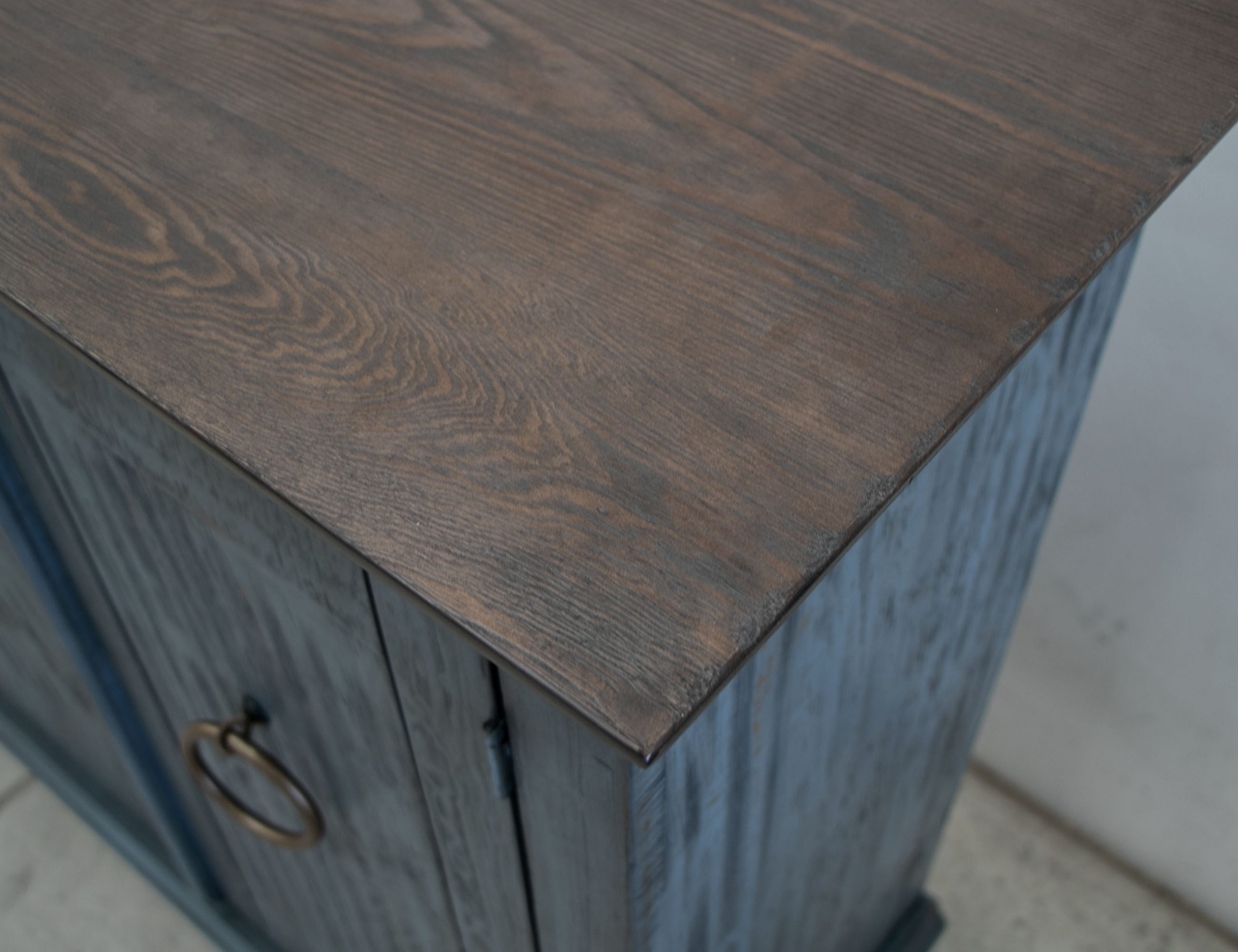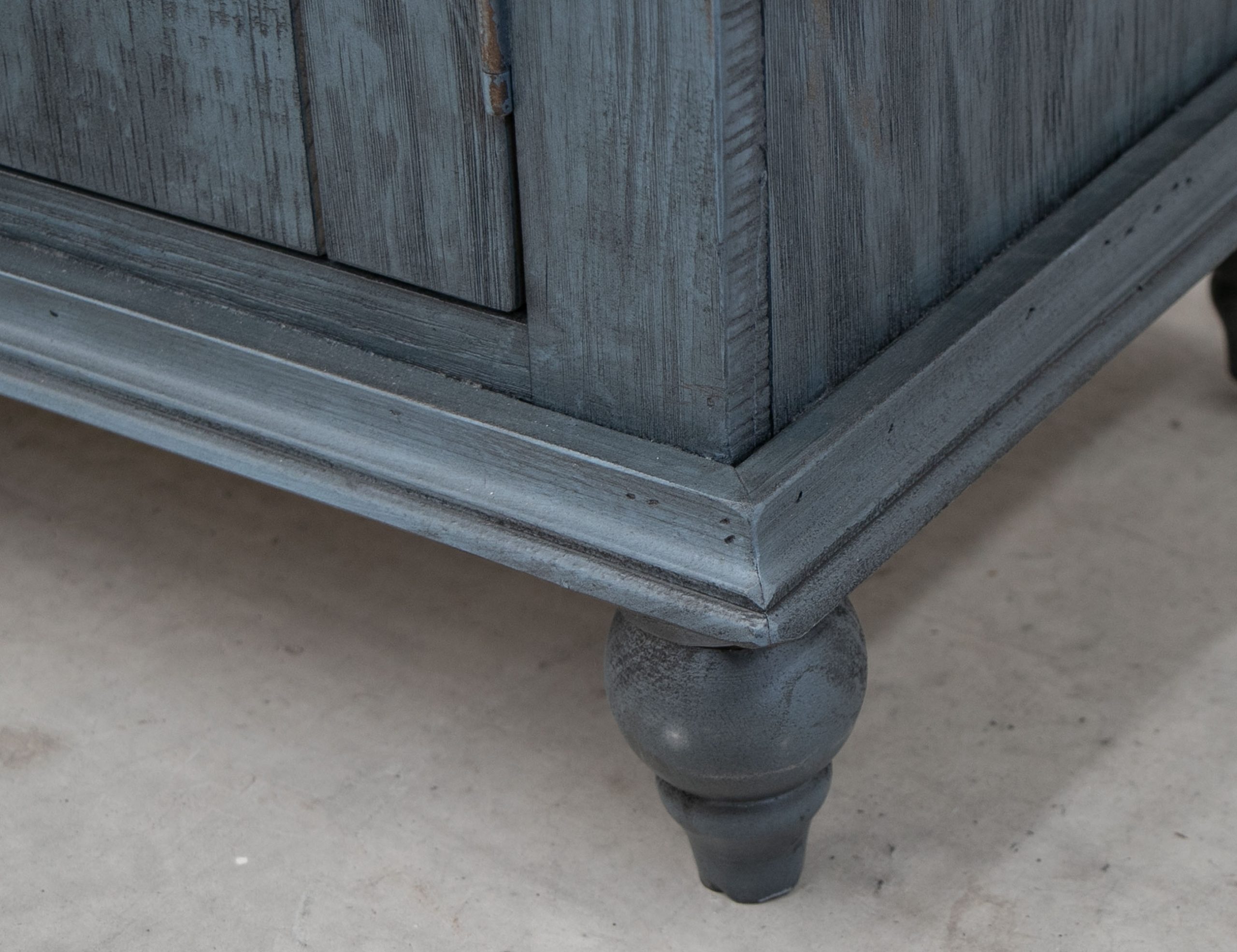 • Multi-step lacquer finish in an antiqued off-white, hand-applied.