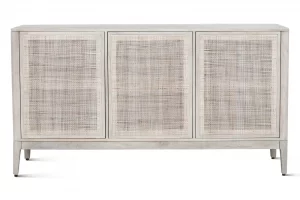 The Casablanca 64″ Sideboard features sustainable mango wood construction with delicate cane detailing, finished in natural white for a clean, coastal-inspired look. This sideboard combines simple contemporary design with functional storage, making it a versatile addition to modern dining or living areas. Pair it with the matching dining table and chairs for a cohesive and stylish setting.