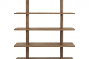 The Casey bookcase embodies contemporary elegance, marrying form and function with understated sophistication. A vertical support with a bullnose edge softens the silhouette, introducing an organic feel to the rectangular shelving.