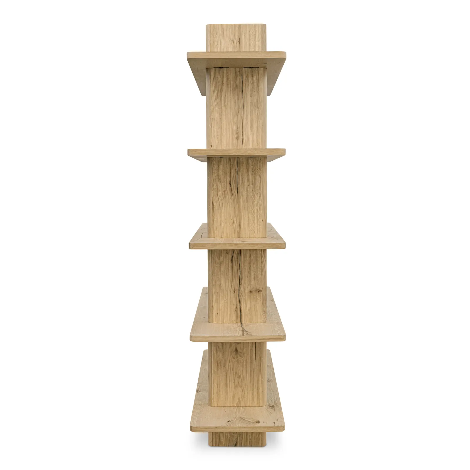 The Casey bookcase embodies contemporary elegance, marrying form and function with understated sophistication. An innovative vertical support with a bullnose edge softens the silhouette, introducing an organic feel to the rectangular shelving.