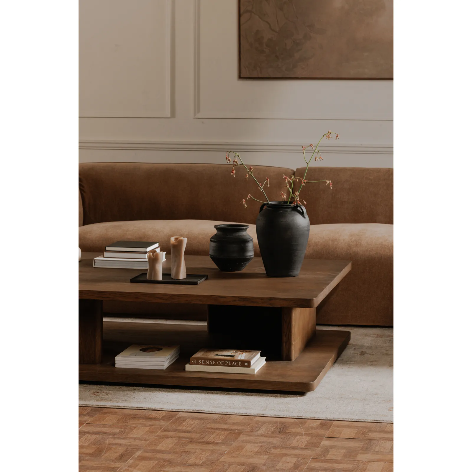 Big on presence, low on fuss. The Casey coffee table anchors your space with sculptural simplicity, blending organic warmth with clean, modern lines. Its dark oak finish shows off the natural grain, while a distinctive bullnose-edged pillar adds quiet drama beneath the surface. Crafted with solid oak and oak veneer, it’s built to last—and built to work, thanks to a wide-open base that doubles as display or storage. Strong, grounded, and effortlessly cool.