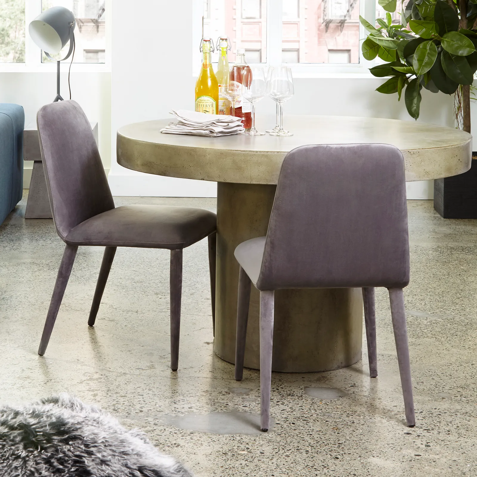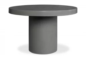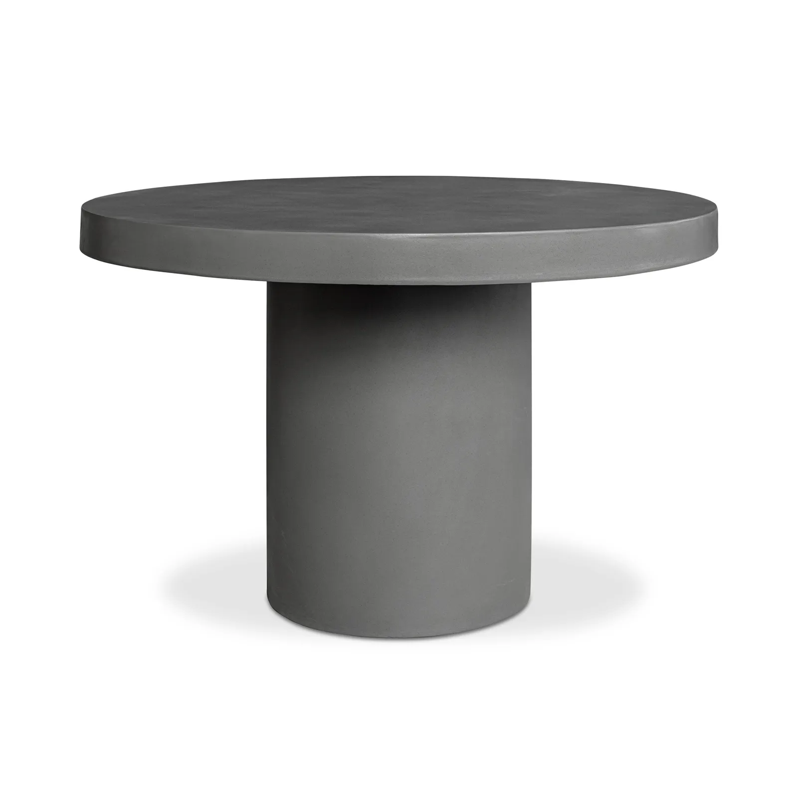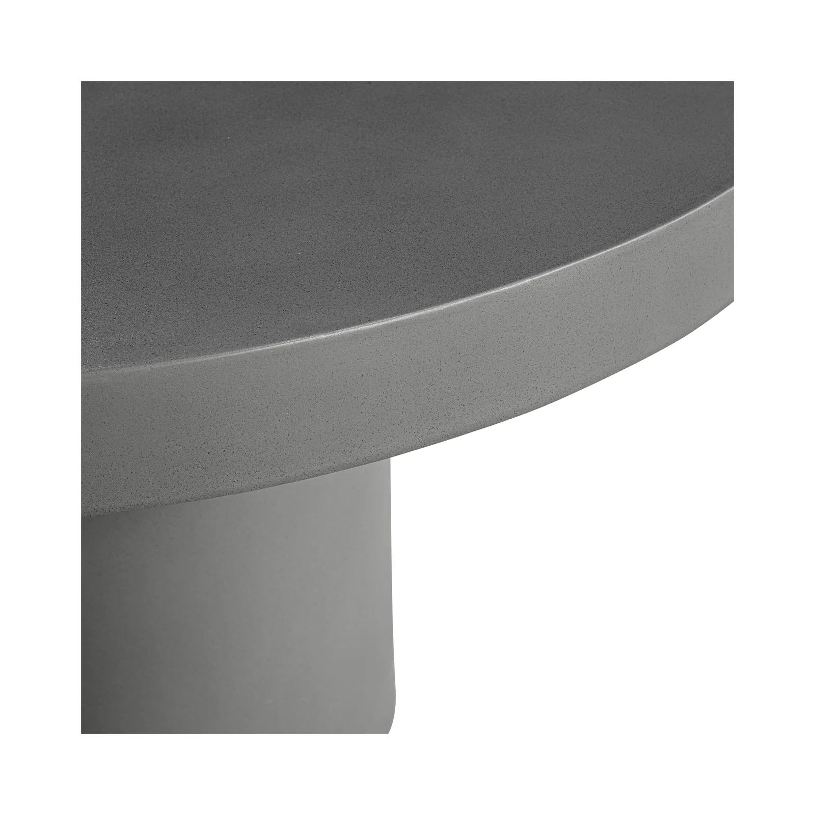 Keen on concrete to bring the outdoors a little closer. A hard material for softer contrast, the Cassius outdoor patio table is the perfect transitional piece for alfresco living. Both durable and eye-catching, this round pedestal table is made from fiber-reinforced concrete that helps to prevent cracking. Here to give your outdoor dining area a sleek, modern look with a hefty pillared base and a thick, matte, circular tabletop. Ideal for any garden or patio setting, this dining table works indoors as well as a stately, contemporary design.