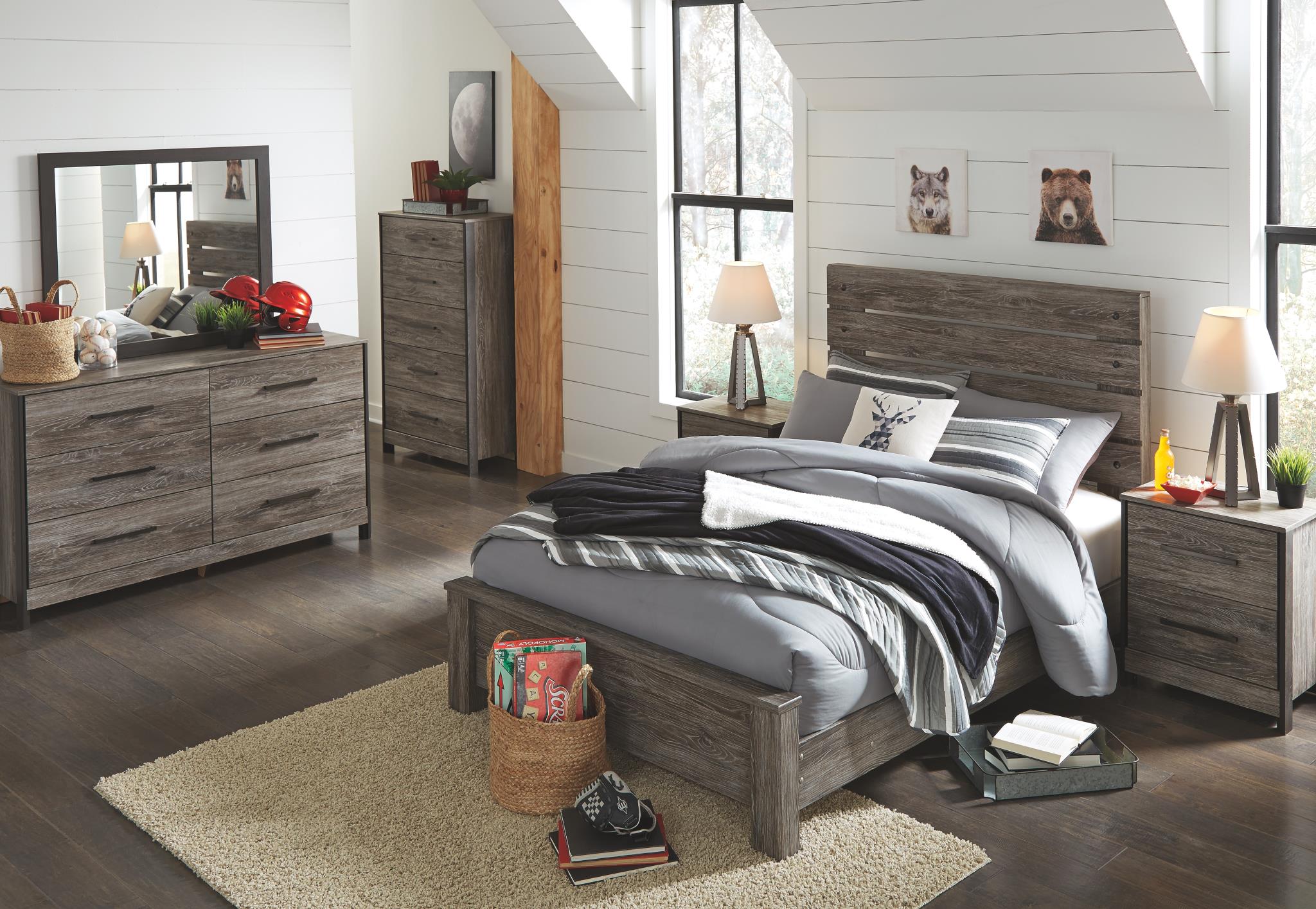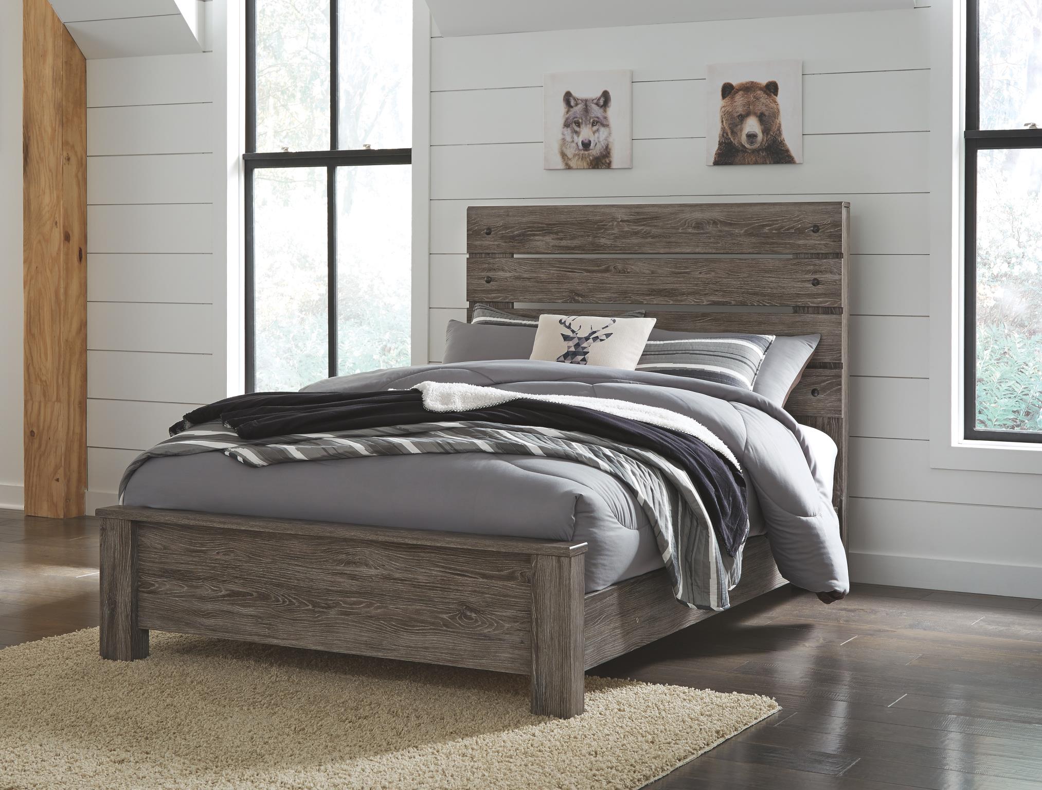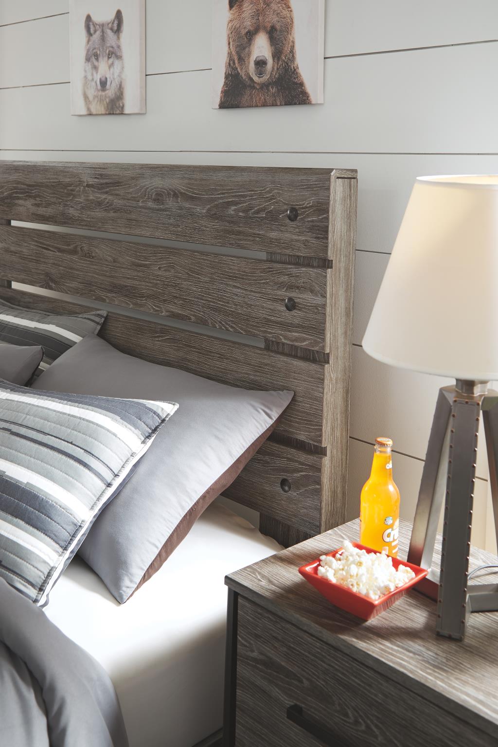 As much as you love escaping to the country,,,, you’re equally drawn to the city. No wonder this full panel headboard fits you so well. Sporting an easy-on-the-eyes finish inspired by weathered barn wood,,,, Cazenfeld is sure to please with an uptown look and a down-to-earth sensibility. Open slat headboard with rivet accents gives the urban pastoral aesthetic an added punch of character.