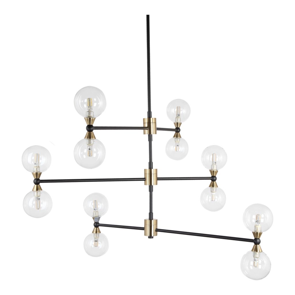 Our Centauri Pendant Light is as dazzling and complex as the Alpha Centauri star system itself. Twelve lightbulbs encased in delicate glass orbs extend from sleek, sturdy iron rods. Works as both a light fixture and an art installation.