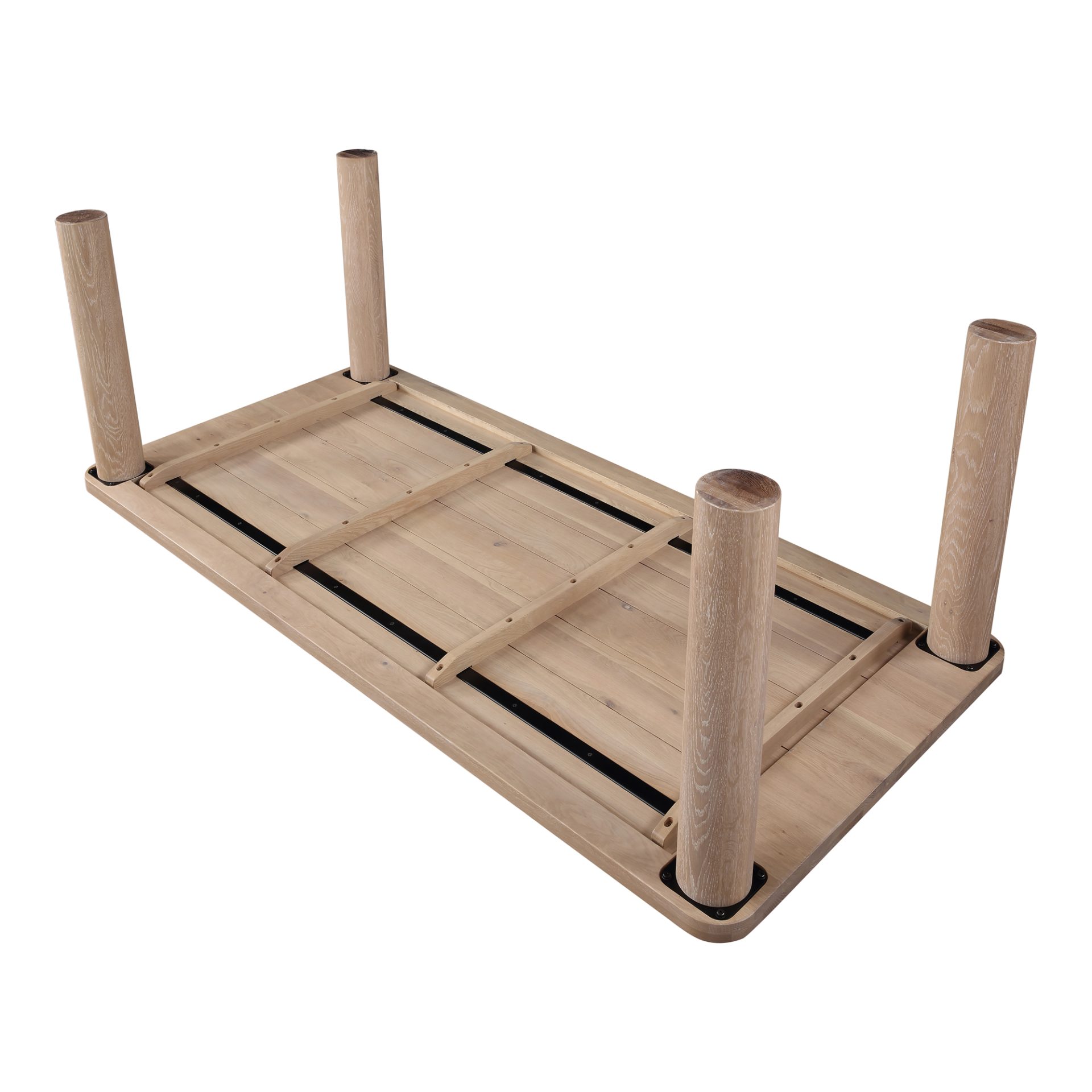 To seat our profound desire to gather together. Perfect for an open-plan kitchen or dining room with spacious seating for up to eight, this large dining table features rounded, industrial post legs that accent its tabletop. Filled with bright, organic energy in solid white oak, this beautifully crafted hardwood table is a modern focal point to your social setting. It’s time to bring the invitations back to the dinner table – this one is braced for years of celebration.