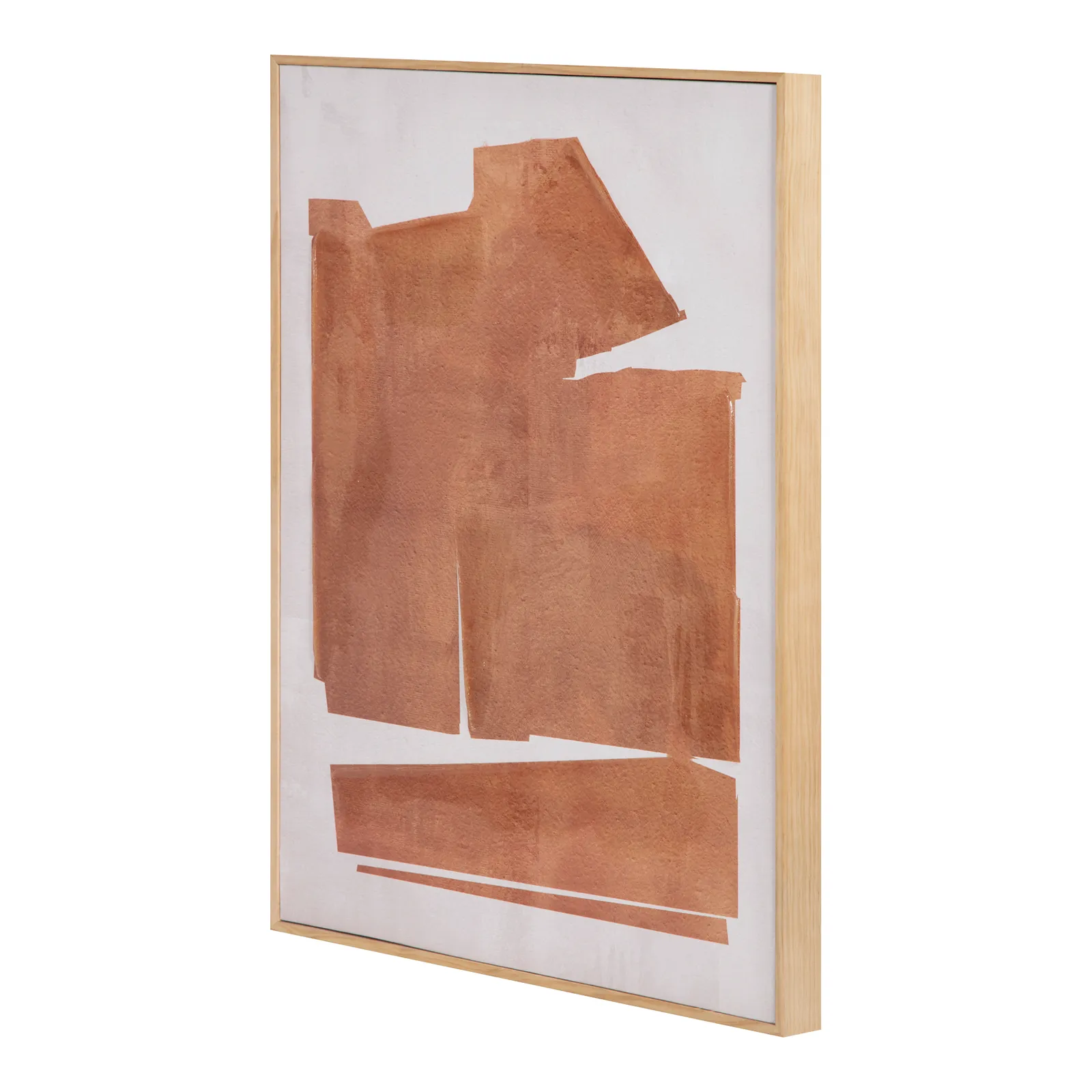 A painting with an abundance of abstract allure where sharp angles are elegantly softened by muted tones, Cici’s complementing pink and orange hues evoke an earthy warmth, creating a serene yet striking composition—a captivating piece expertly finished with a solid pine frame.