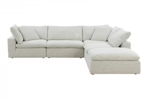 A sectional that’s ready for all the messes involved in running a busy household. The Clay modular sectional is upholstered with our NeverFear™ Performance Technology Fabric, that is moisture repellent, stain resistant and offers barrier protection. Its cushions are filled generously with feather and fiber blend, and channeled and double wrapped to maximize durability. The top eight inches cushioning is filled with foam making it ultra comfy and family friendly. Its capability of minimal maintenance and modularity allows you to stay stylish while having your desired configuration. It is truly a great value added to any space.