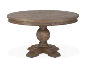 The Colonial Plantation 48″ Round Dining Table in Weathered Teak exemplifies time-honored craftsmanship with heirloom-quality design. Crafted exclusively from solid mango wood, this table features hand-planed surfaces and hand-turned legs finished in a durable, moisture-resistant catalyzed coating. The weathered teak finish and generous proportions lend rustic warmth and rich patina, making it a striking centerpiece for designers, trade professionals, and wholesale retailers seeking timeless and sustainable solid wood furniture.