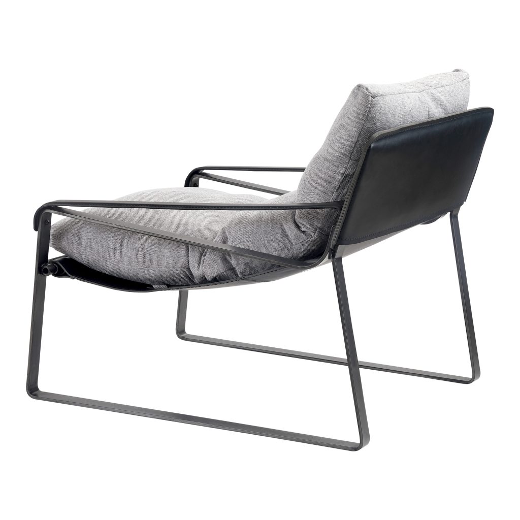 How do you choose the right accent chair for your space? We suggest skipping the rest and head straight for this modern classic. The Connor club chair features a feather-filled cushion with soft grey fabric, perfect for leisurely lounging. It also has a distinctively sturdy leather sling that’s reclined for all sorts of relaxation. A little sculptural with a luxe dash, this chair’s sleek and robust iron frame adds an industrial edge to the smooth black leather.