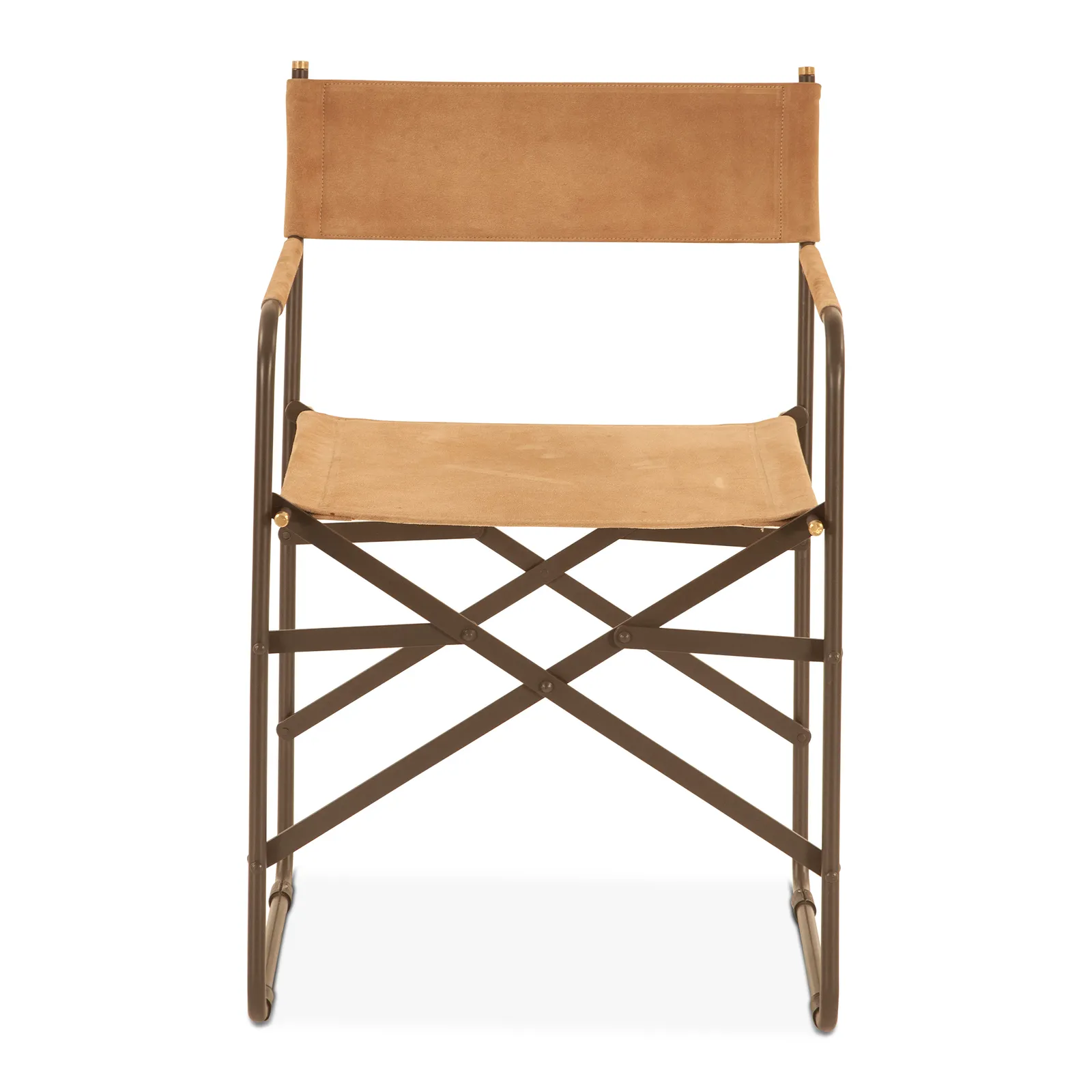 The Copenhagen 19″ Director’s Chair in Sand Suede presents a modern twist on a classic design. Crafted with luxurious sand suede and a reclaimed iron frame with an antique zinc finish, this foldable chair combines style and practicality. A chic addition to any space.