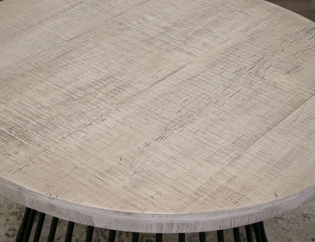 • Embrace the perfect blend of rustic charm and transitional elegance with the Cosala collection. Crafted from solid pine, this piece boasts a distressed finish, accentuated by wormholes across its top surface. The bi-color finish and stunning handwrought metal base add depth and character, creating a visually captivating focal point that seamlessly bridges the gap between traditional and contemporary aesthetics.