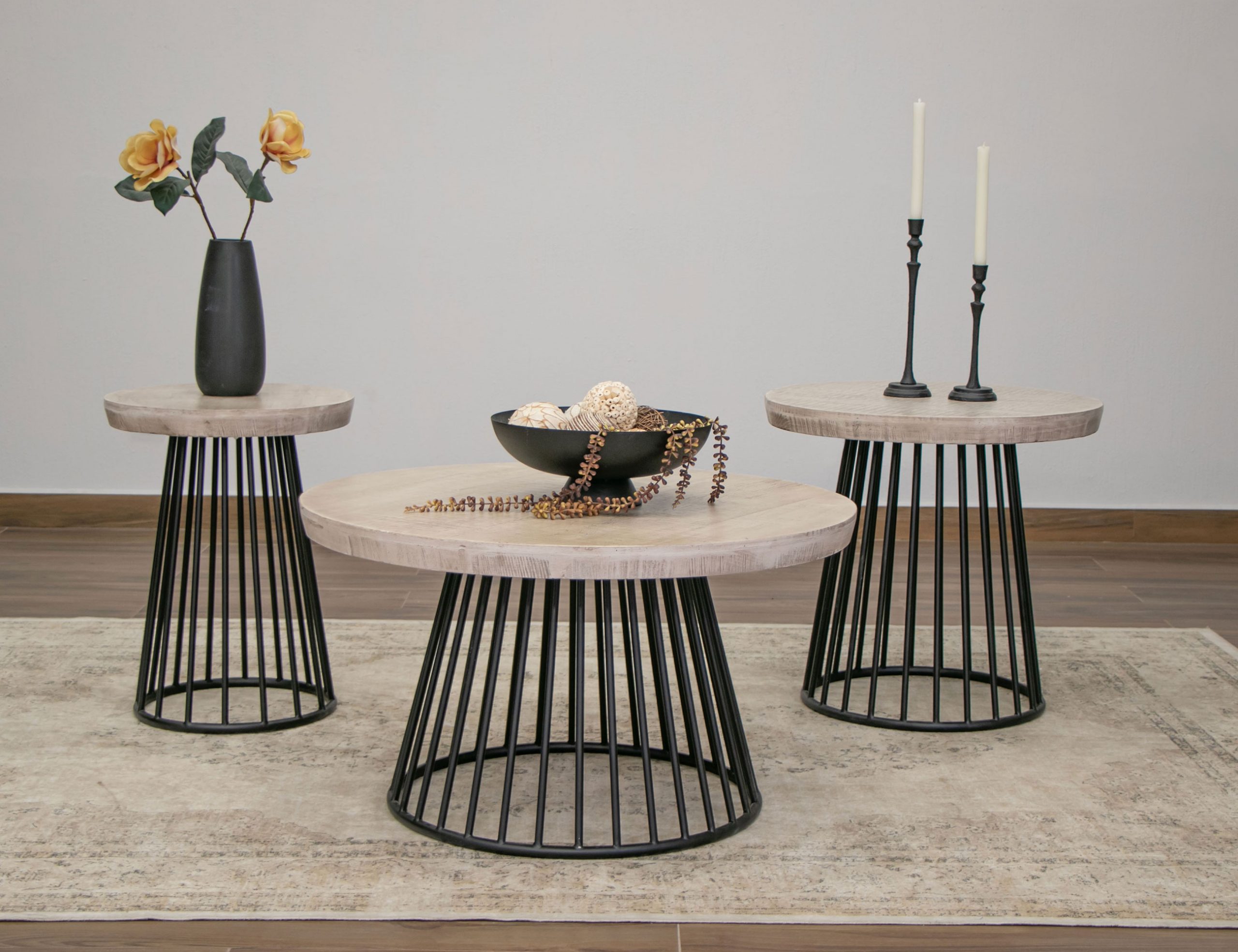 • Crafted of solid pine wood and engineered wood on the tops to prevent seasonal cracks.