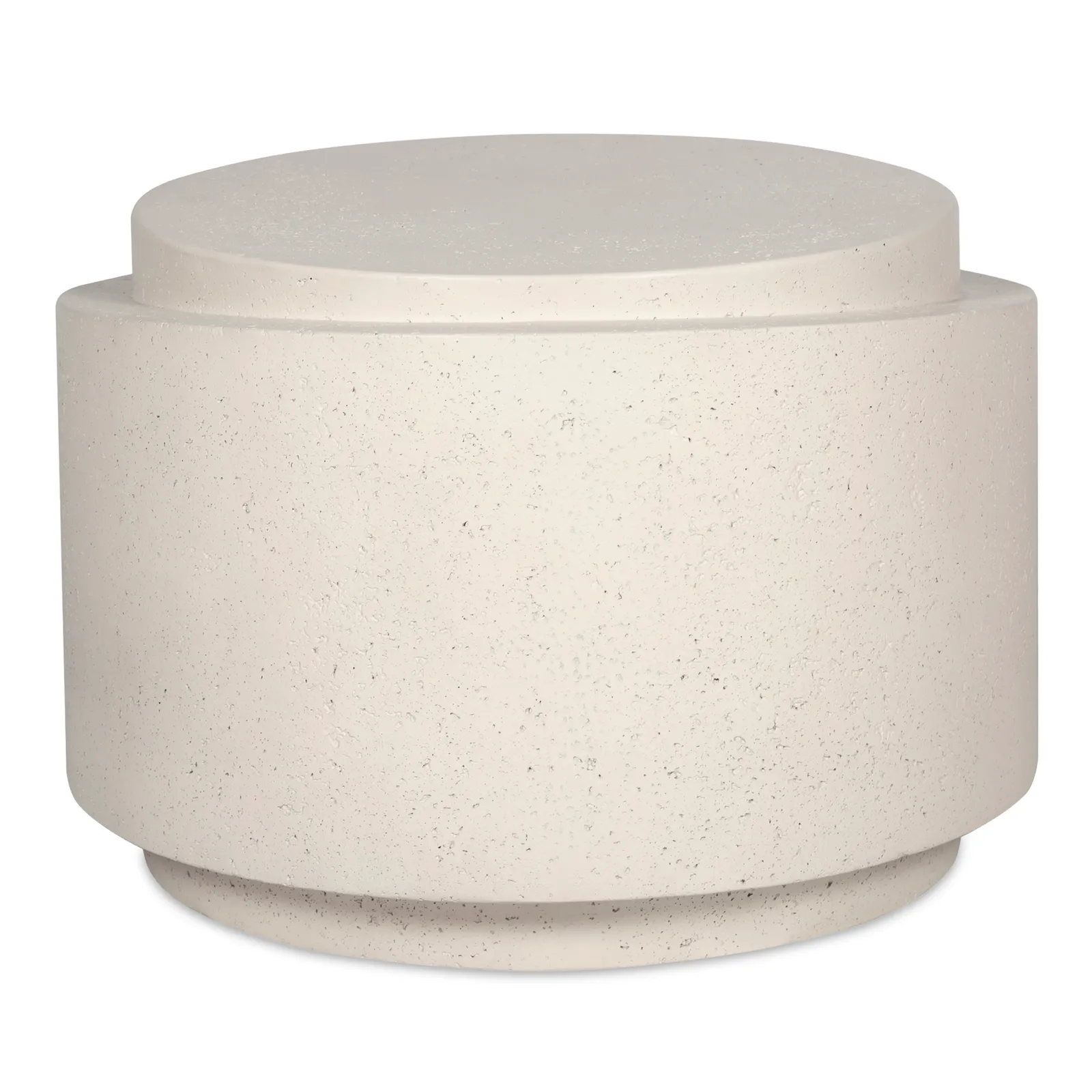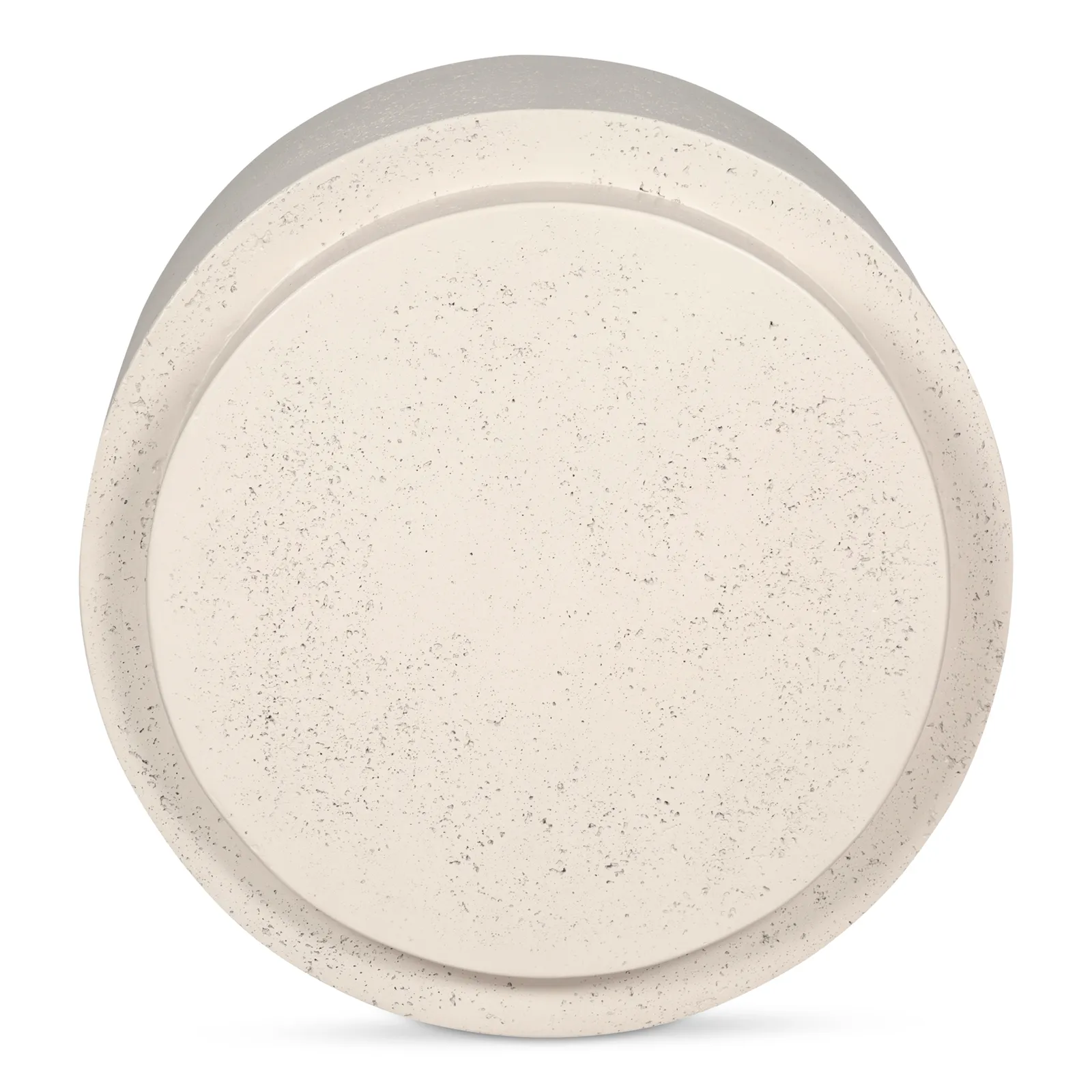 Modern design meets the raw beauty of nature in the Cosmo outdoor accent table. Its organic, lava-stone-like finish imbues a sense of earthiness rarely found in furniture. Created from a mix of concrete and finely selected small stones under 3mm is both visually interesting and tactile. We recommend covering and storing the table indoors during adverse weather conditions to preserve its unique texture and appearance.