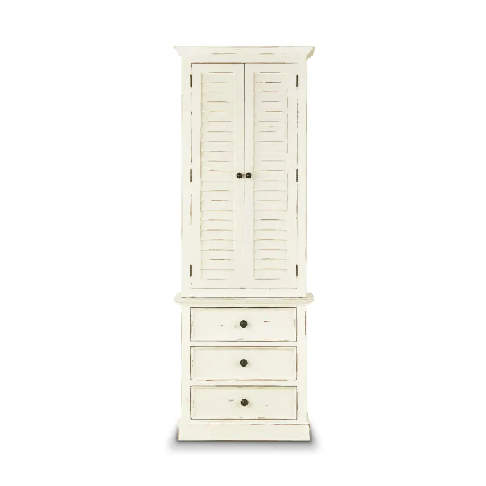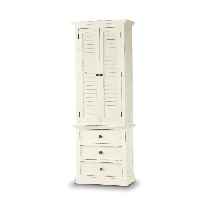 Bring a romantic cottage ambiance to a transitional space with the Nantucket Tall Shutter Cabinet. Built from solid mahogany wood, it’s a versatile and beautiful piece providing storage in a compact form. This piece is offered with a vast array of finish and distress options to create a truly custom design.