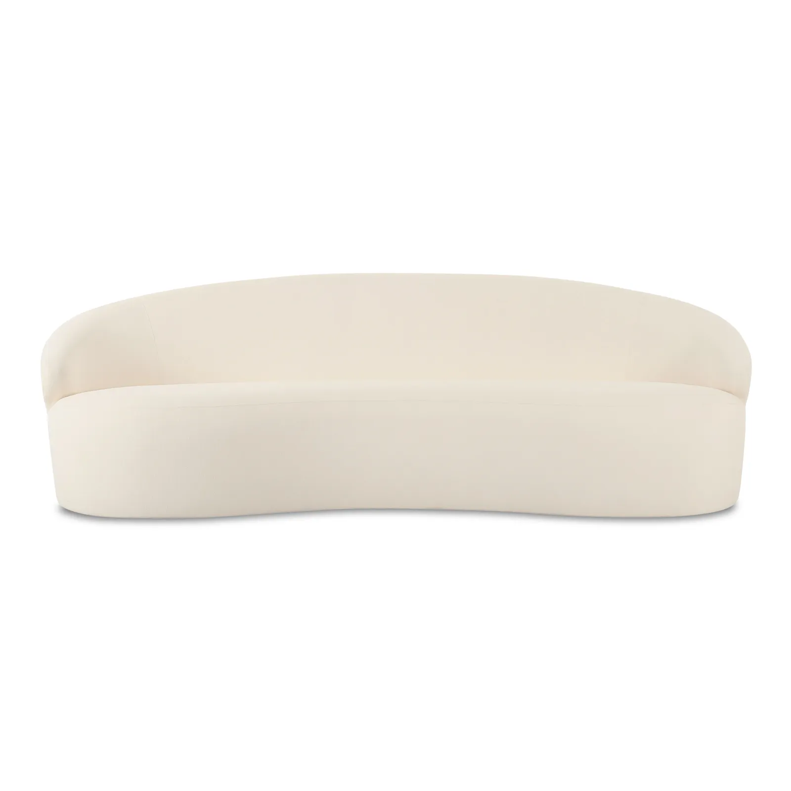 The Cove sofa’s elegant design features a soft, curved form atop a sleek plinth base and discreet plastic leg, offering secure, graceful seating. Fully upholstered in a water-resistant, all-weather fabric, the sofa ensures a lasting look suitable for outdoor spaces.