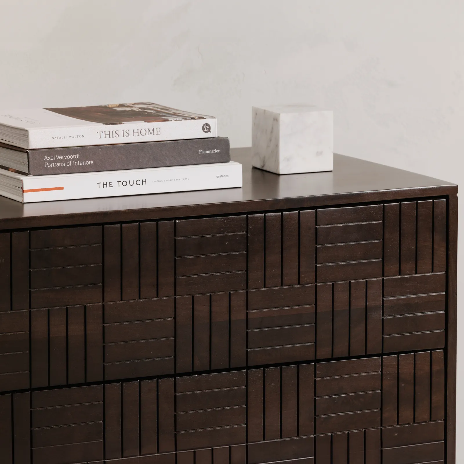 Inspired by the unique intricacies of wood-patterned parquet flooring, the Denman collection pays homage to the timeless charm of the designer’s first residencies with carefully crafted woodwork. The facade features a stunning arrangement of woodgrain, adding depth and character to each piece.