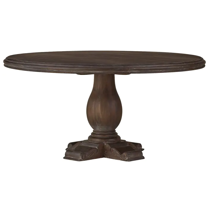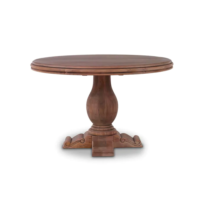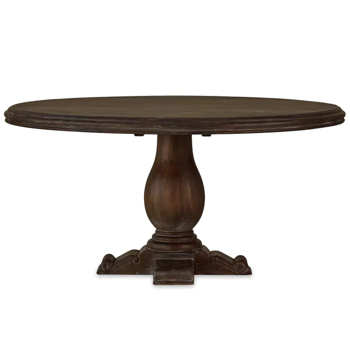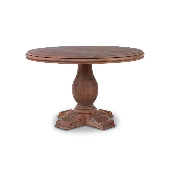 A beautiful urn-inspired base lends curvy appeal to the classic Drake Round Pedestal Table. Perfect for the breakfast nook, this table is crafted in gorgeous solid mahogany. This piece is offered with a vast array of finish and distress options to create a truly custom design. Commes in 2 sizes.