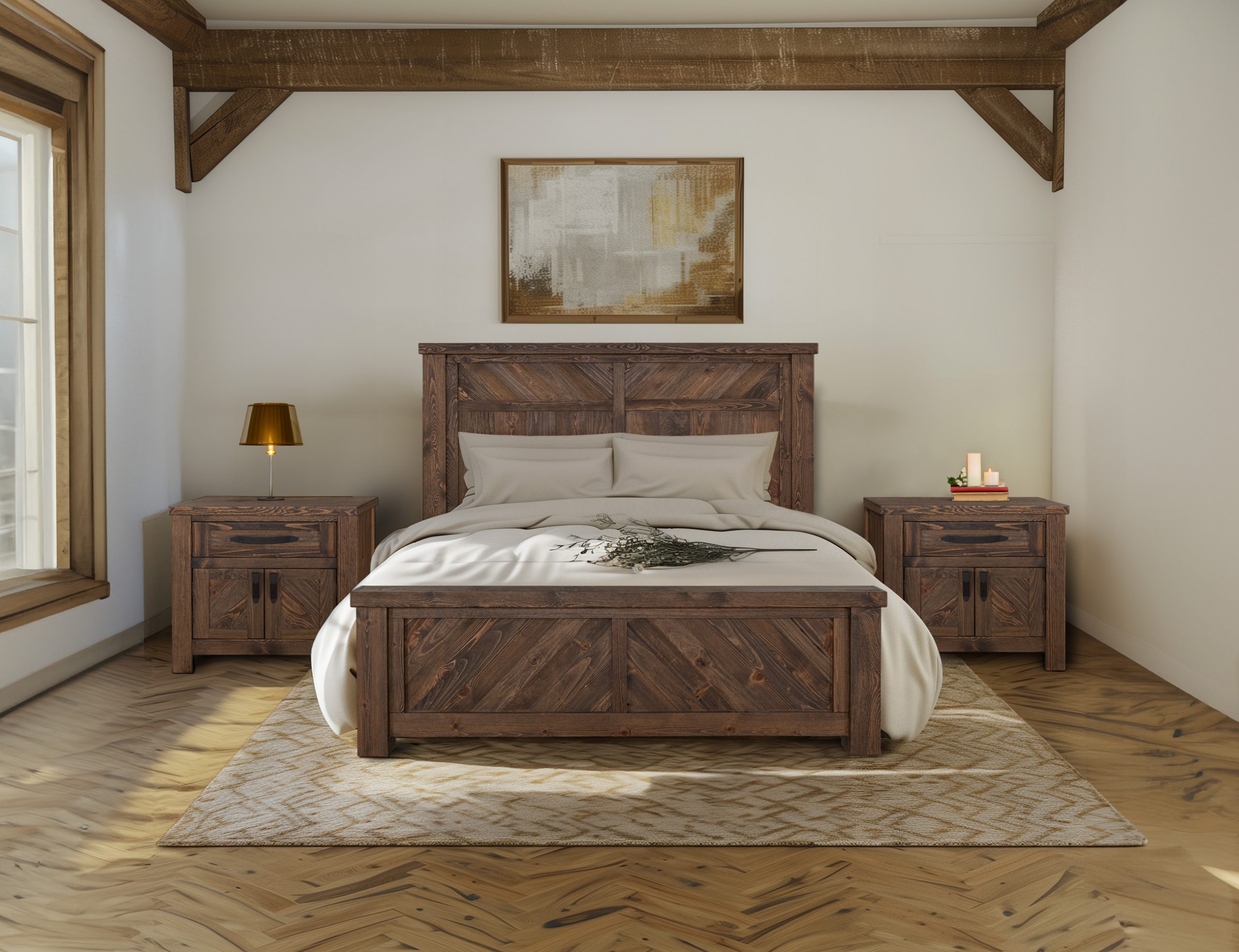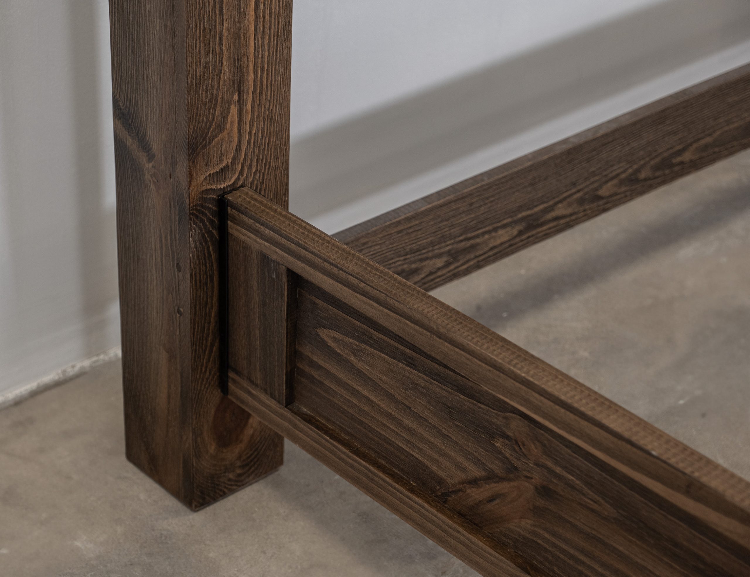 • Lightly distressed wood with a brown multi-step lacquer finish.