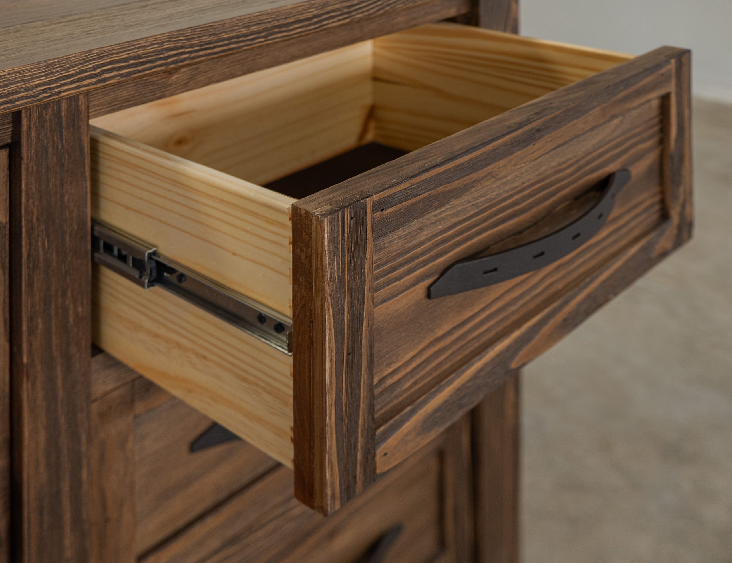 • Lightly distressed wood with a brown multi-step lacquer finish.