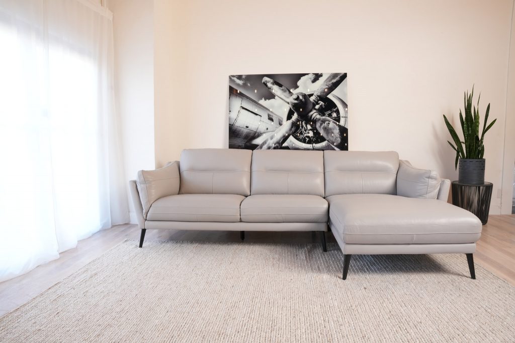 - Metal Tapered Legs: Sturdy yet stylish, the metal tapered legs offer robust support and a sleek finish. Their polished look complements the leather upholstery, enhancing the sofa’s modern aesthetic.