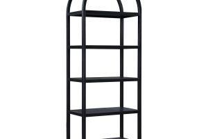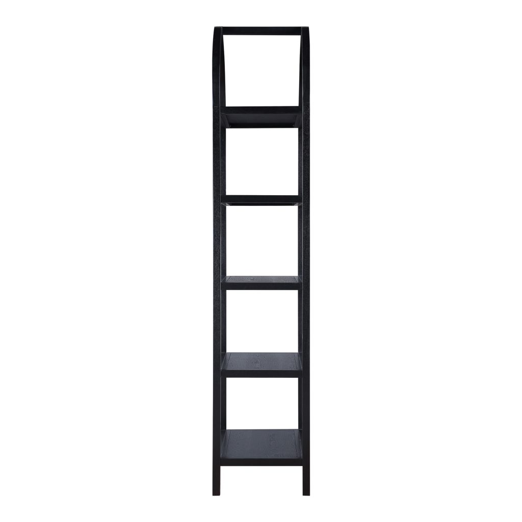An arch addition to bring definition. With a solid oak frame and oak veneered shelves, the Eero bookcase is ready to serve as the new home for your books, treasures and keepsakes. A black finish provides moody sophistication, while its arch support brings architectural artistry to your living space (along with sturdy durability).