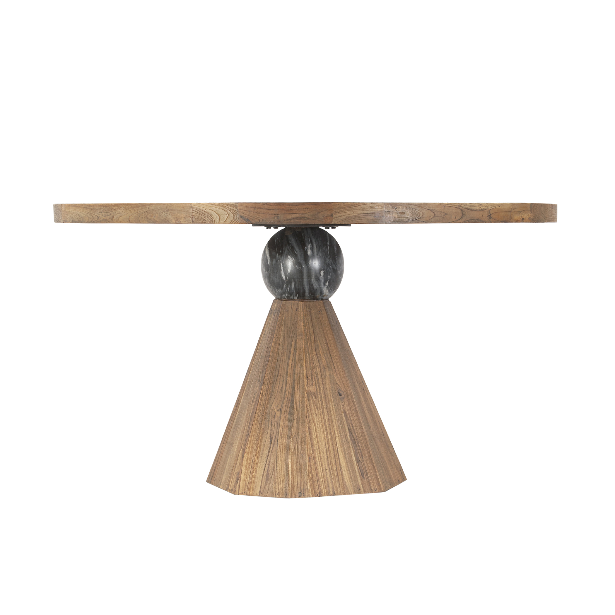 Eiffel 54″ Round Dining in Antique Teakwood and Marble Round