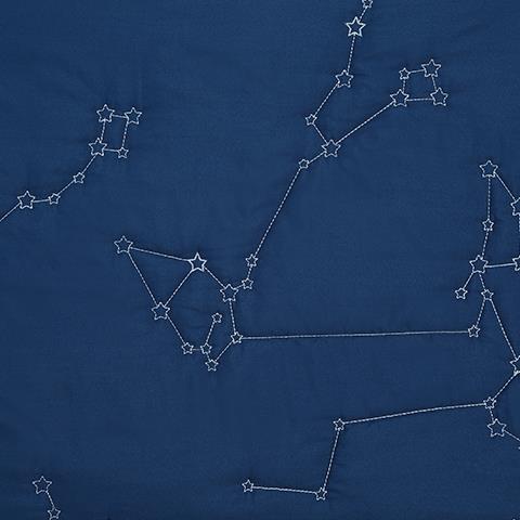 Create room for self-expression with this fun bedding set. Encourage your child’s interest in the stars and delight them with this comforter set. Solid navy and white embroidered constellations on one side reverses to gray with white embroidered constellations on the other. Rest assured,,,, they’ll happily drift off to dreamland in a space that’s uniquely theirs.