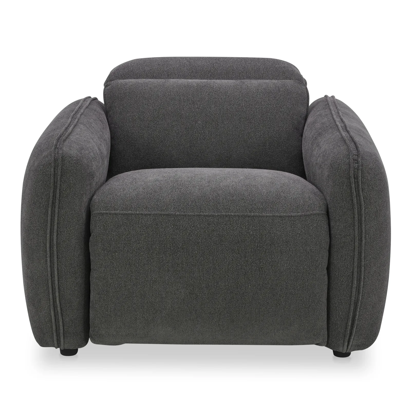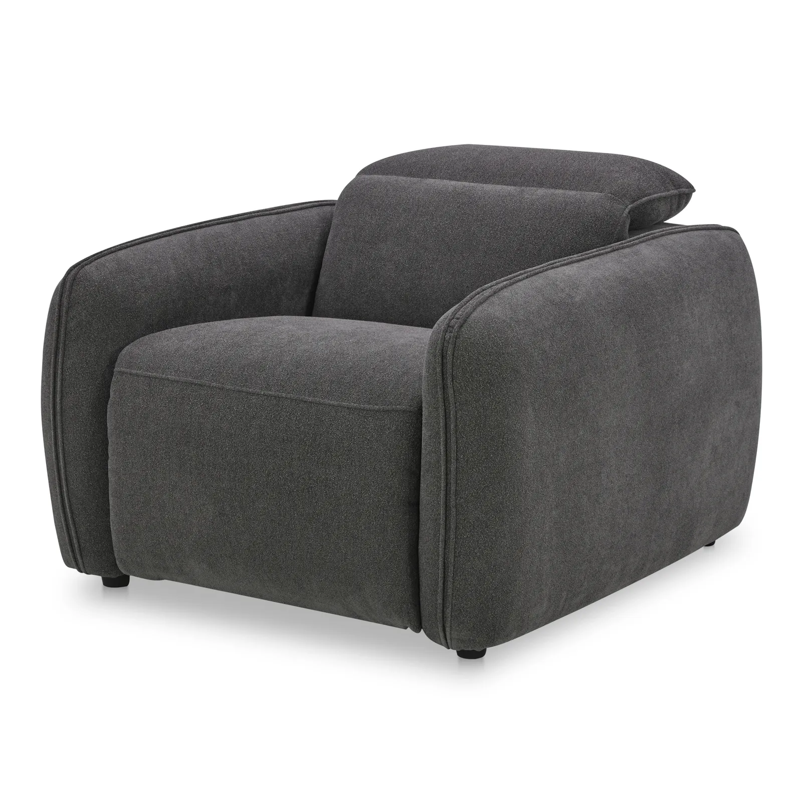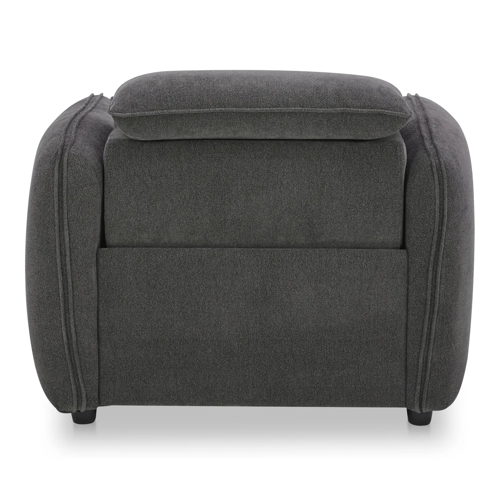 Designed with rounded edges and a plush form, the Eli Power Recliner chair secures a sumptuous embrace with its inviting seat. Soft-to-the touch fabric combines with the feather and fiber seat to provide an added layer of plushness. For ultimate in ease and relaxation, this power recliner is equipped with a power motion footrest and headrest that allows for custom seating positions. Plus, the control buttons are discreetly located on the inside arm of the chair.