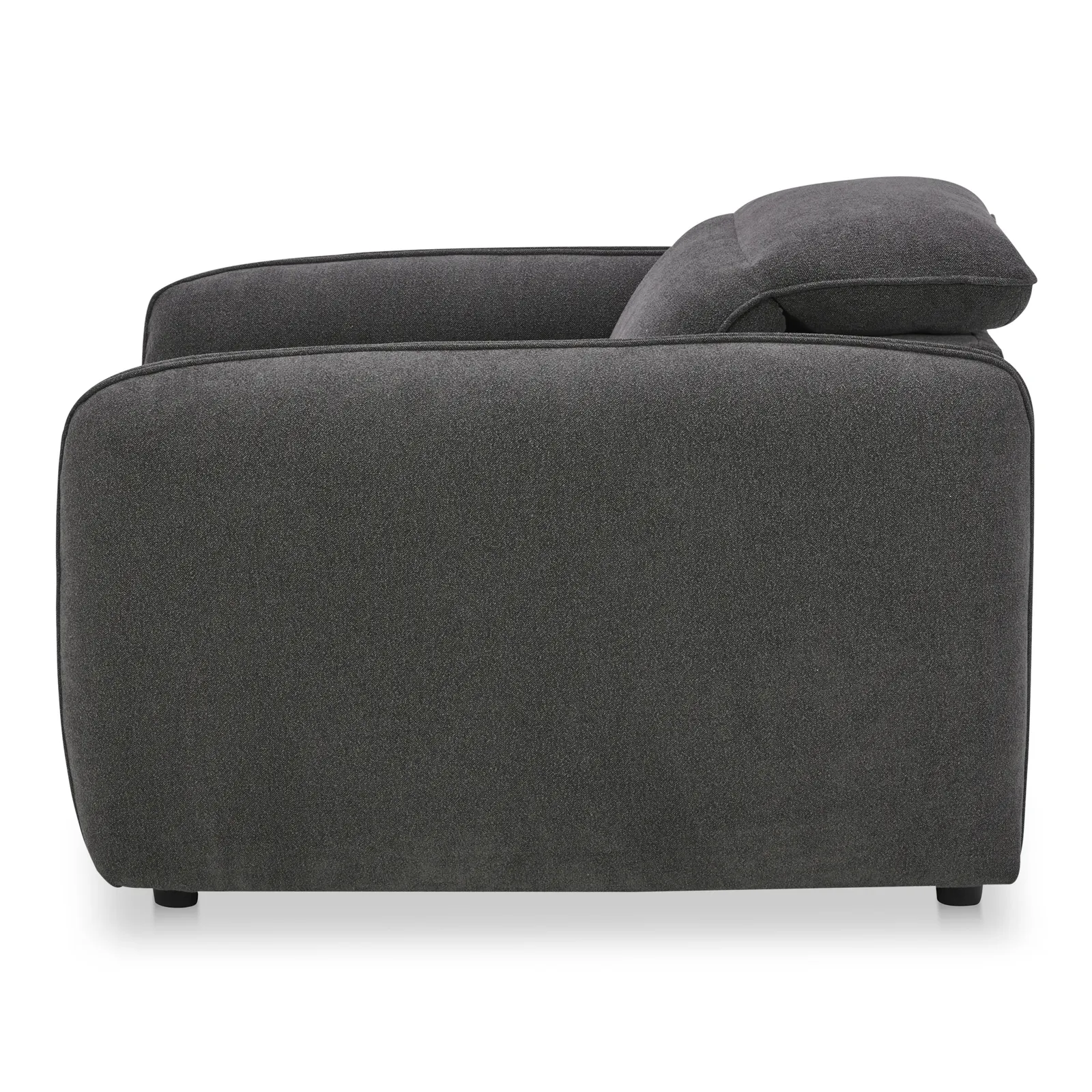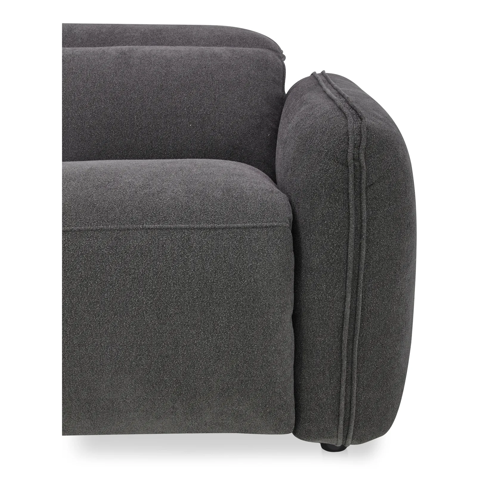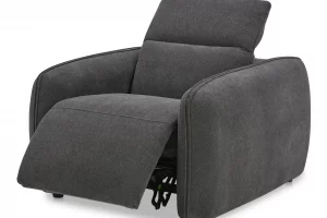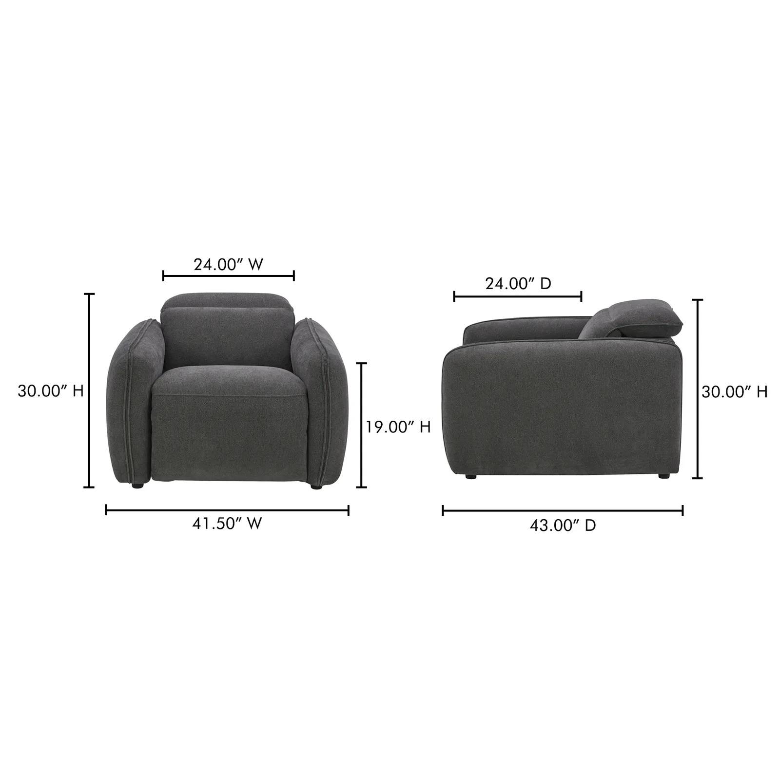 Designed with rounded edges and a plush form, the Eli Power Recliner chair secures a sumptuous embrace with its inviting seat. Soft-to-the touch fabric combines with the feather and fiber seat to provide an added layer of plushness. For ultimate in ease and relaxation, this power recliner is equipped with a power motion footrest and headrest that allows for custom seating positions. Plus, the control buttons are discreetly located on the inside arm of the chair.