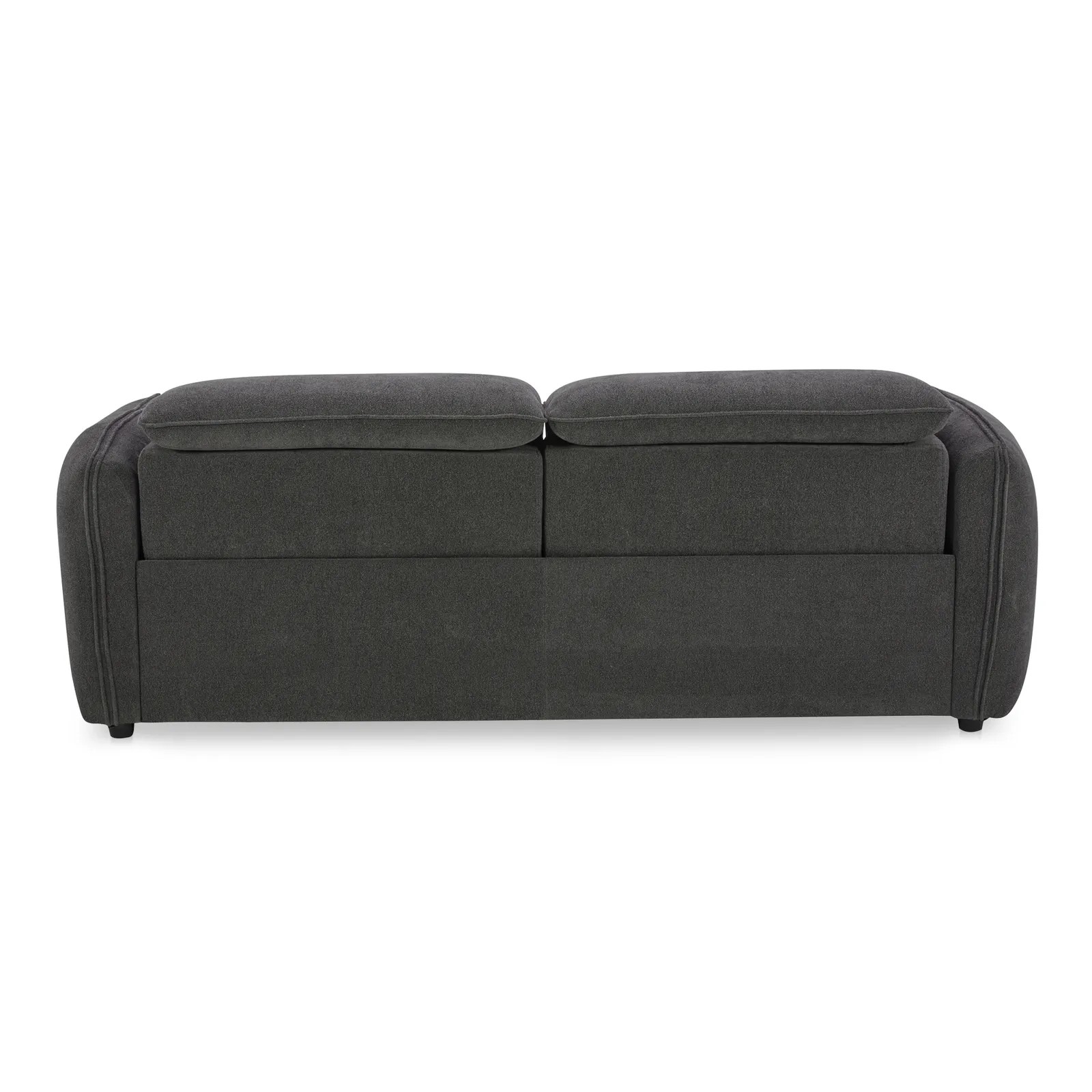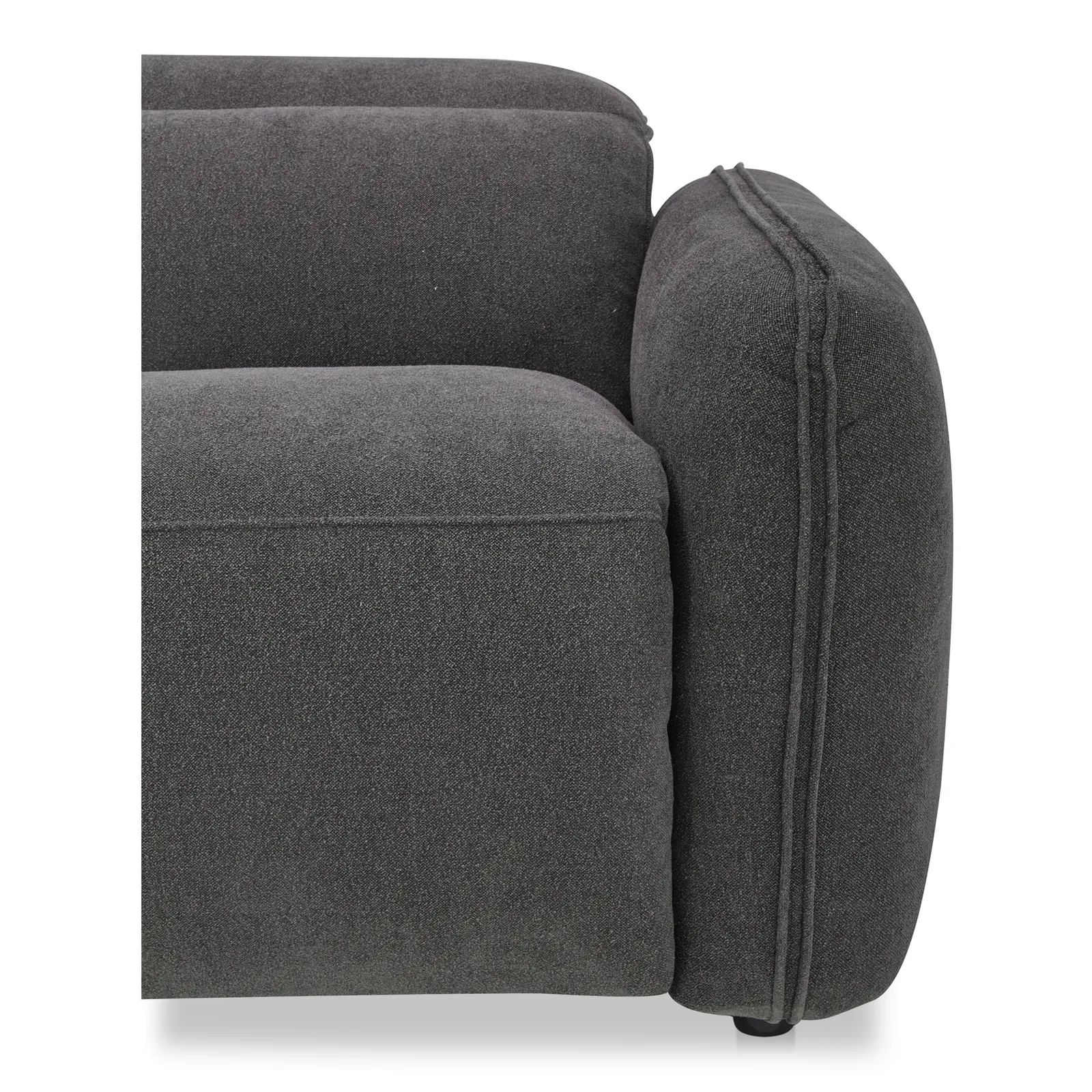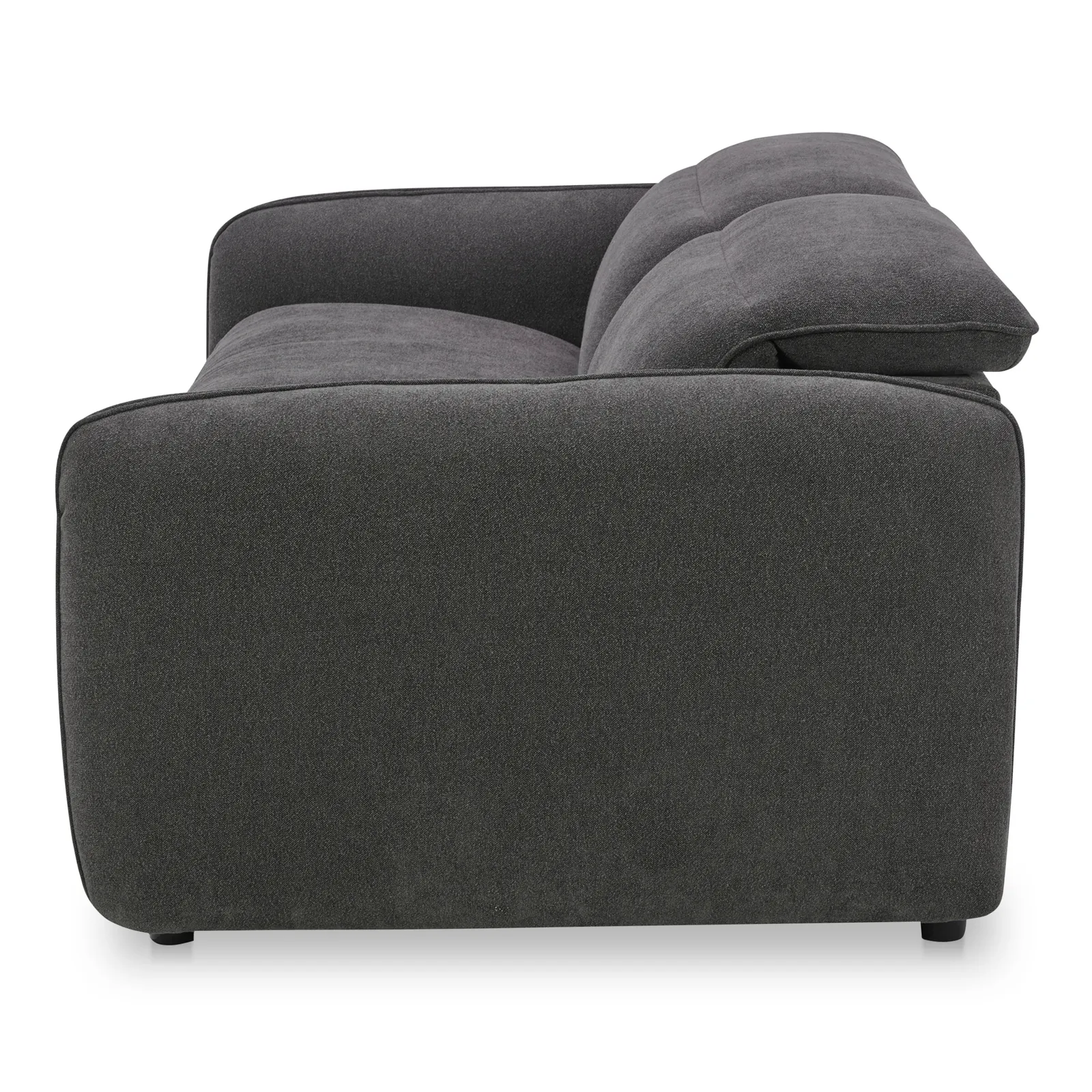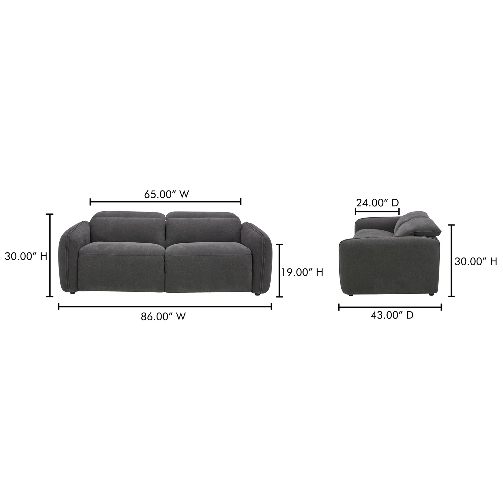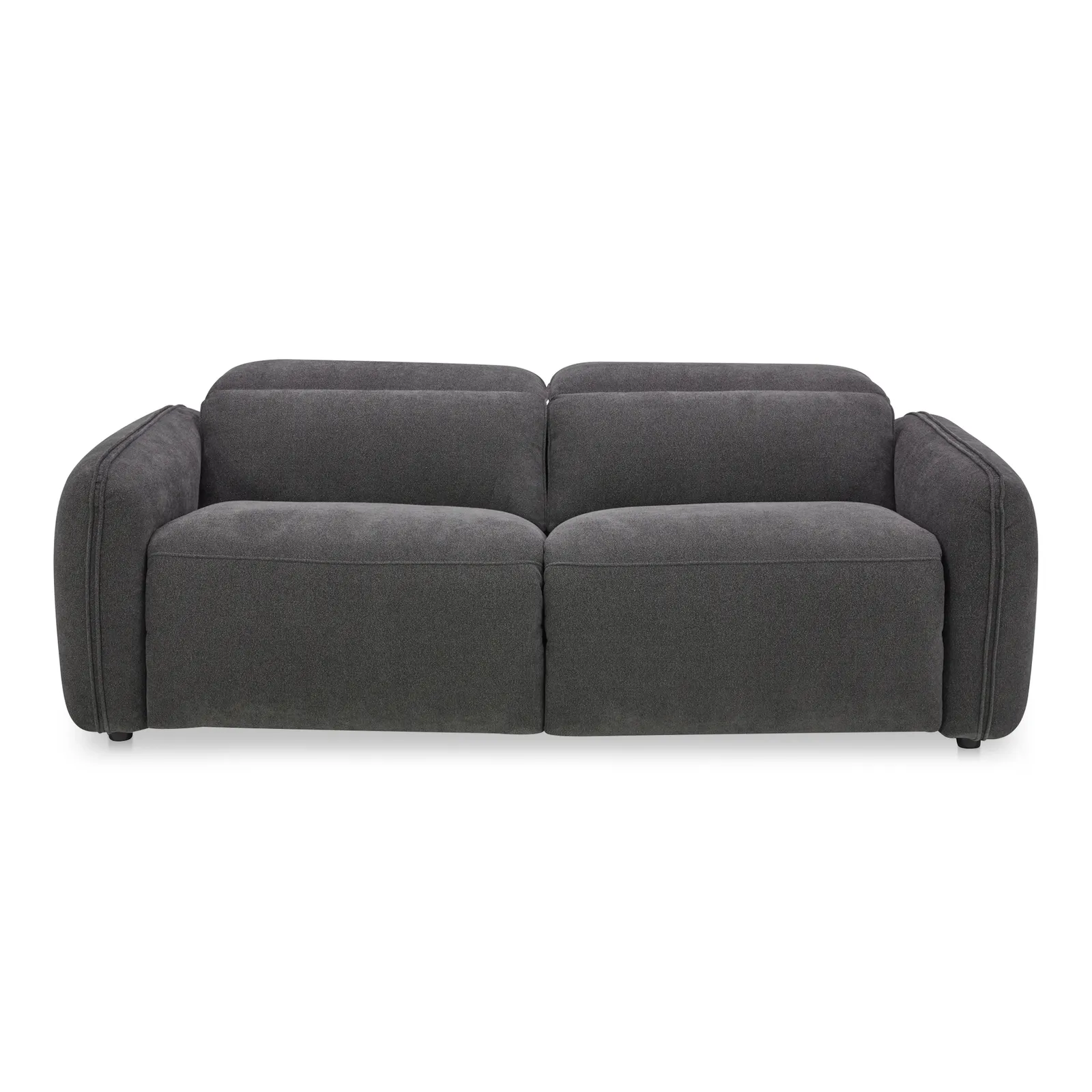 Designed with rounded edges and a plush form, the Eli Power Recliner sofa secures a sumptuous embrace with its inviting seat. Soft-to-the touch fabric combines with the feather and fiber seat to provide an added layer of plushness. For ultimate in ease and relaxation, this power recliner is equipped with a power motion footrest and headrest that allows for custom seating positions. Plus, the control buttons are discreetly located on the inside arm of the sofa.